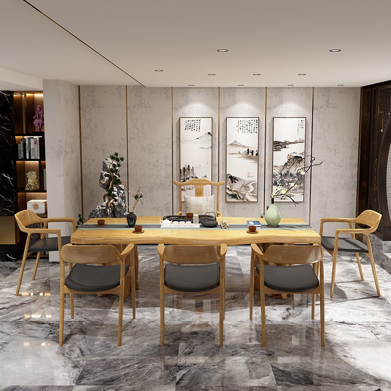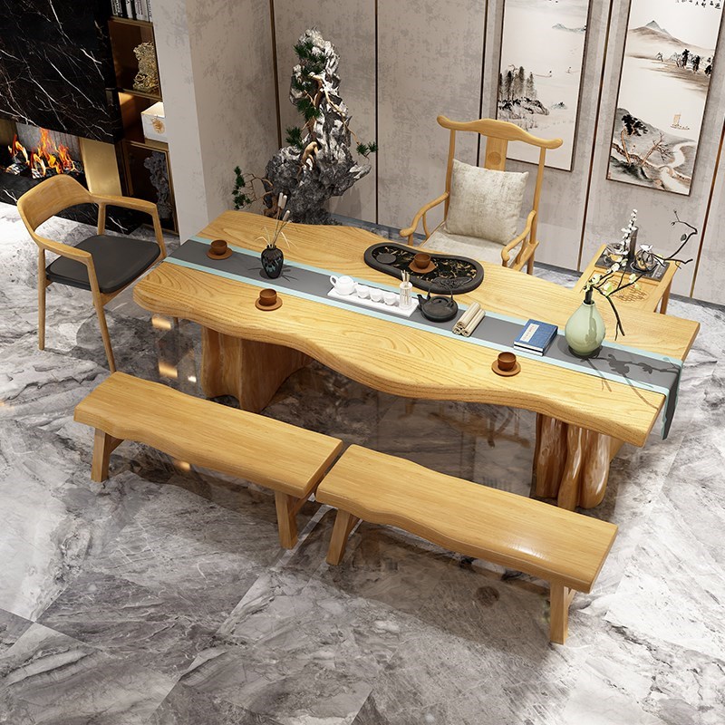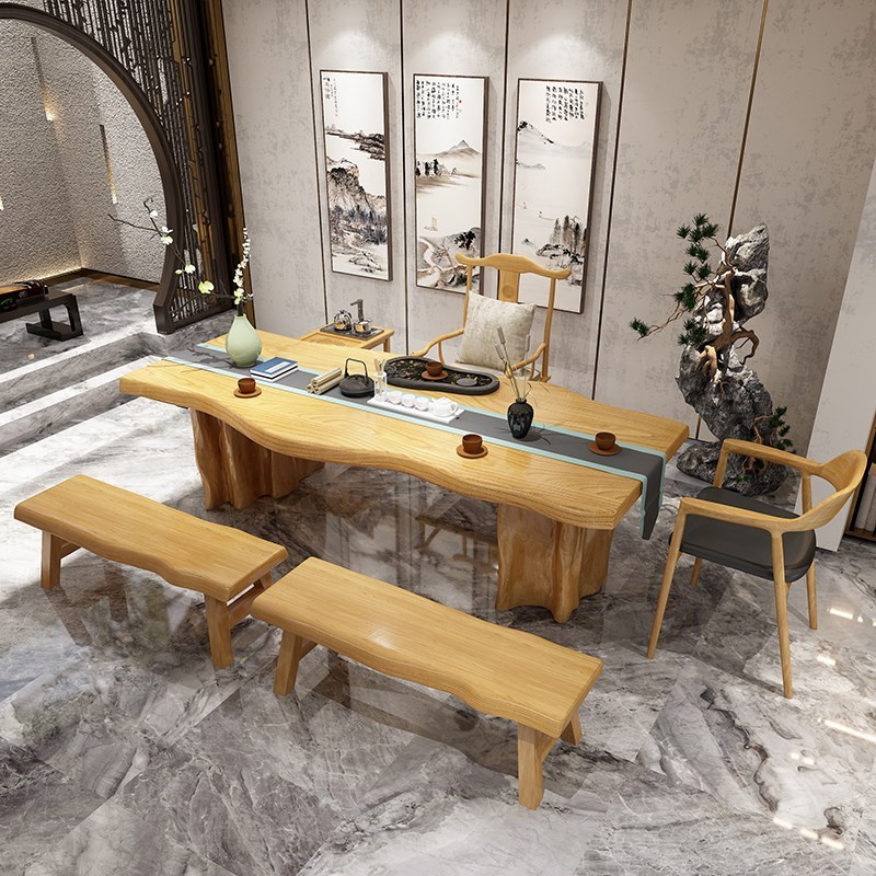 New Chinese style large plate tea Zen coffee table solid wood kung fu tea table and chair combination log desk tea table bench