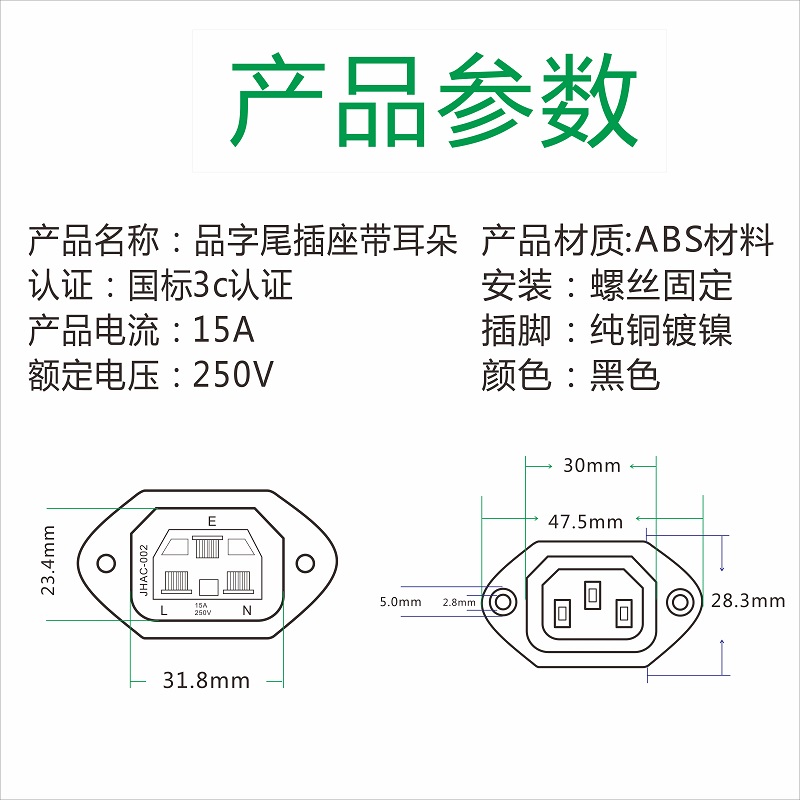 Pindi socket AC-06 power socket 10A250V C13 socket three feet with ear screw hole mother C14 pair plug