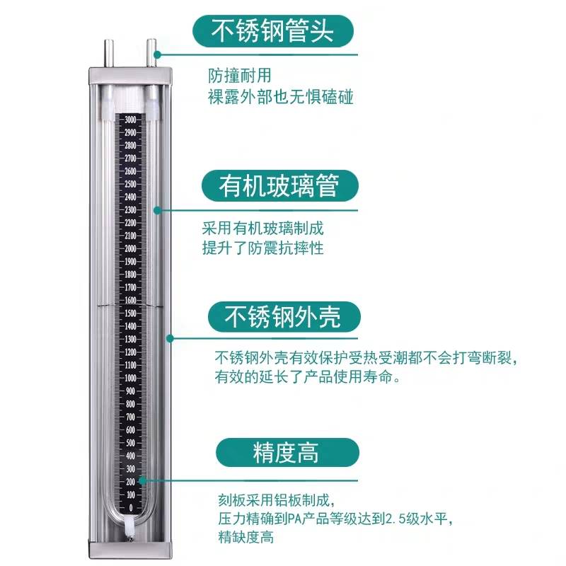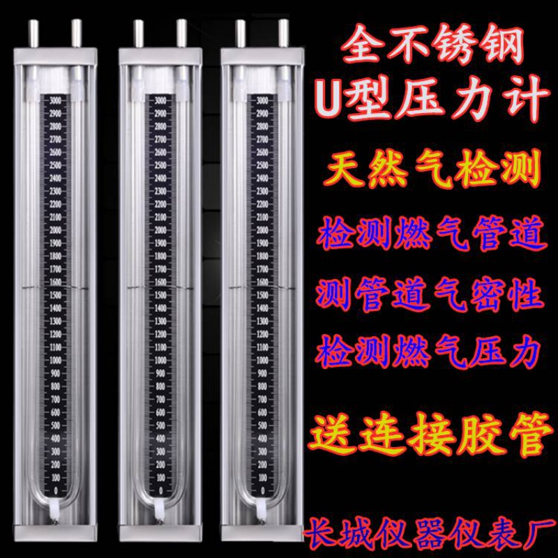 All stainless steel U-shaped pressure gauge organic tube pressure gauge differential pressure gauge gas pipeline detection U-shaped pressure gauge