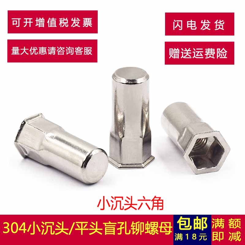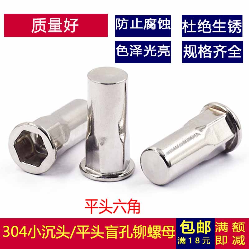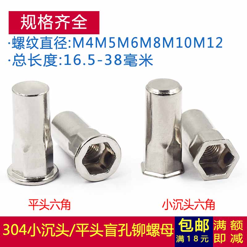 304 stainless steel small sunk head flat head inside and outside half hexagonal blind hole riveting nut M4M5M6M8M10M12