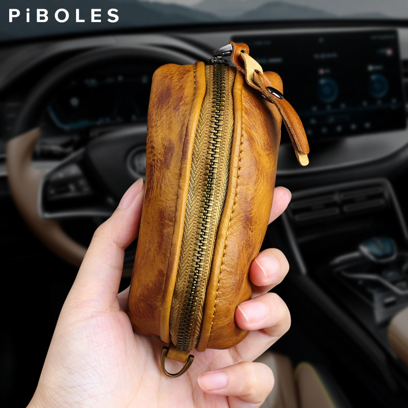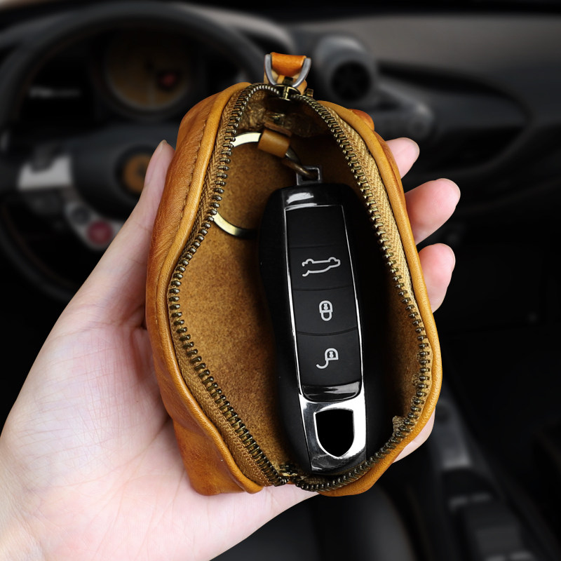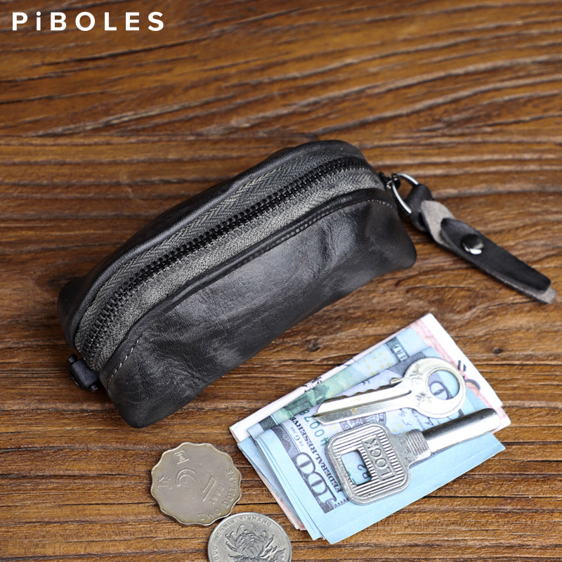 Head layer Implanted Cow Leather Car Key Bag Men And Women Personality Versatile Zero Wallet Handmade Retro Genuine Leather storage bag