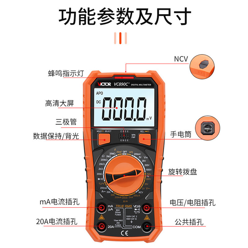 Victory Wanuses electric meter anti-burn digital high-precision fully automatic maintenance electrician universal table VC890C VC890D
