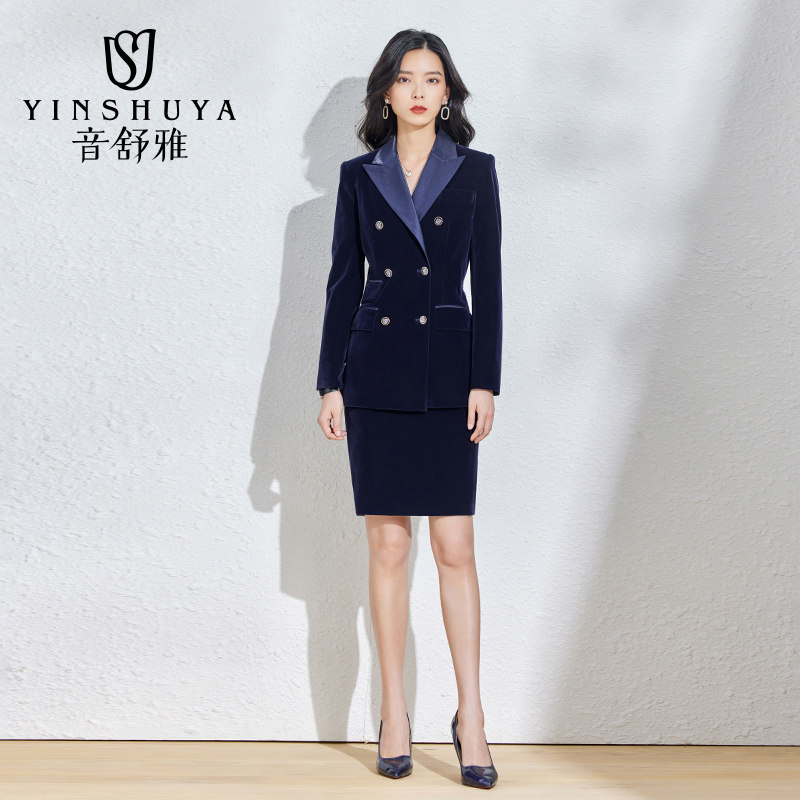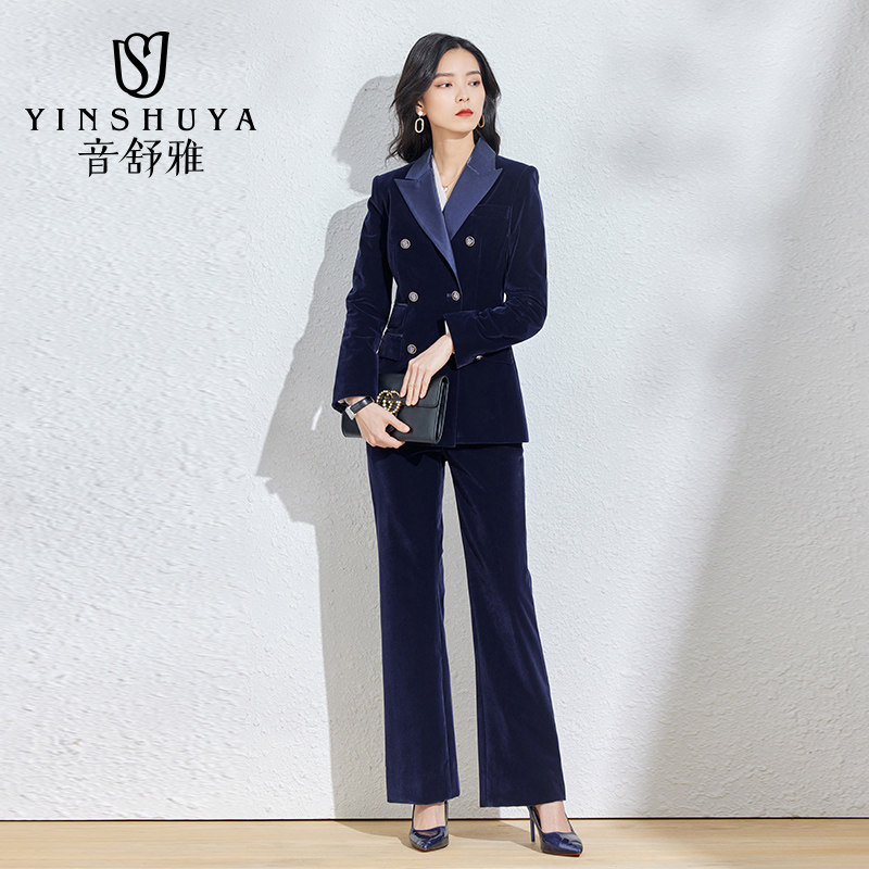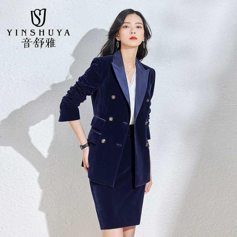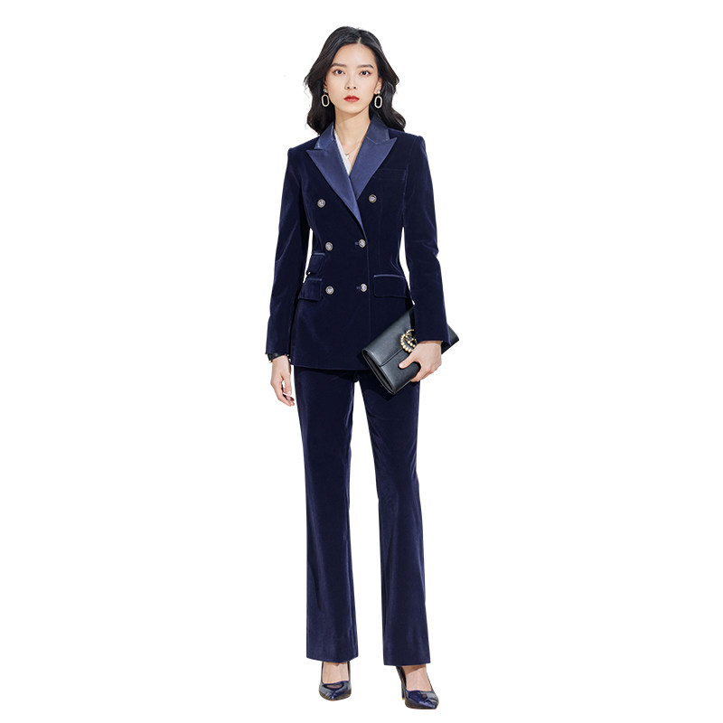 Suit suit women's autumn and winter high-end professional formal wear fashion temperament gold velvet suit Western style commuter work clothes