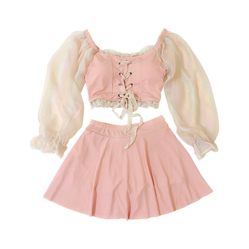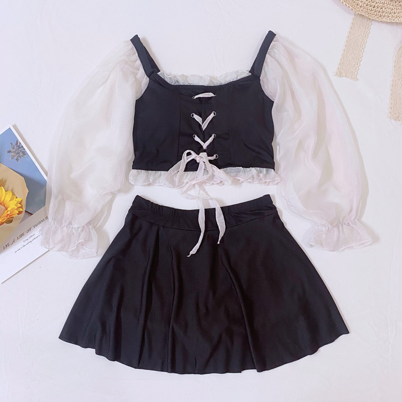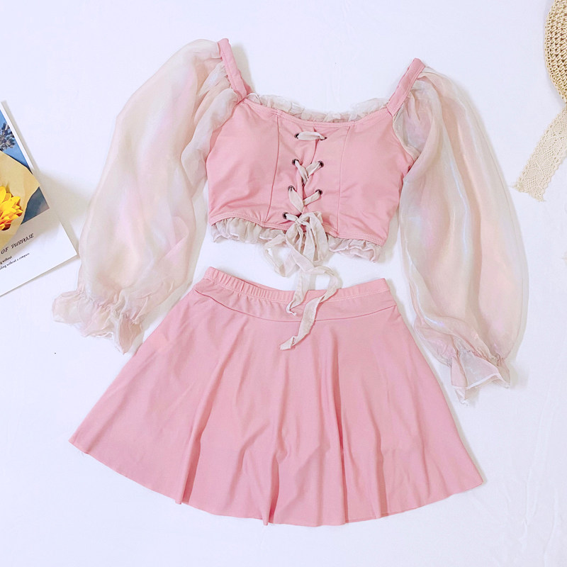 Bubble Spa Swimsuit Schoolgirl Conservative Cute Sweet girl Two-style Skirt Four-corner Pants Veil and Lean Fairy