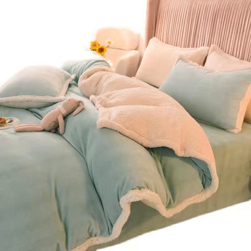 Thickened warm milk cashmere four-piece solid color coral velvet non-slip sheets quilt cover bedding