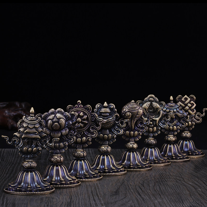 Tibet Tibetan Buddhist Supplies Pure Bronze Eight Auspicious Pendulum of Auspicious Mercy for Buddha Hall Pendulum Pieces Ancient Cyan