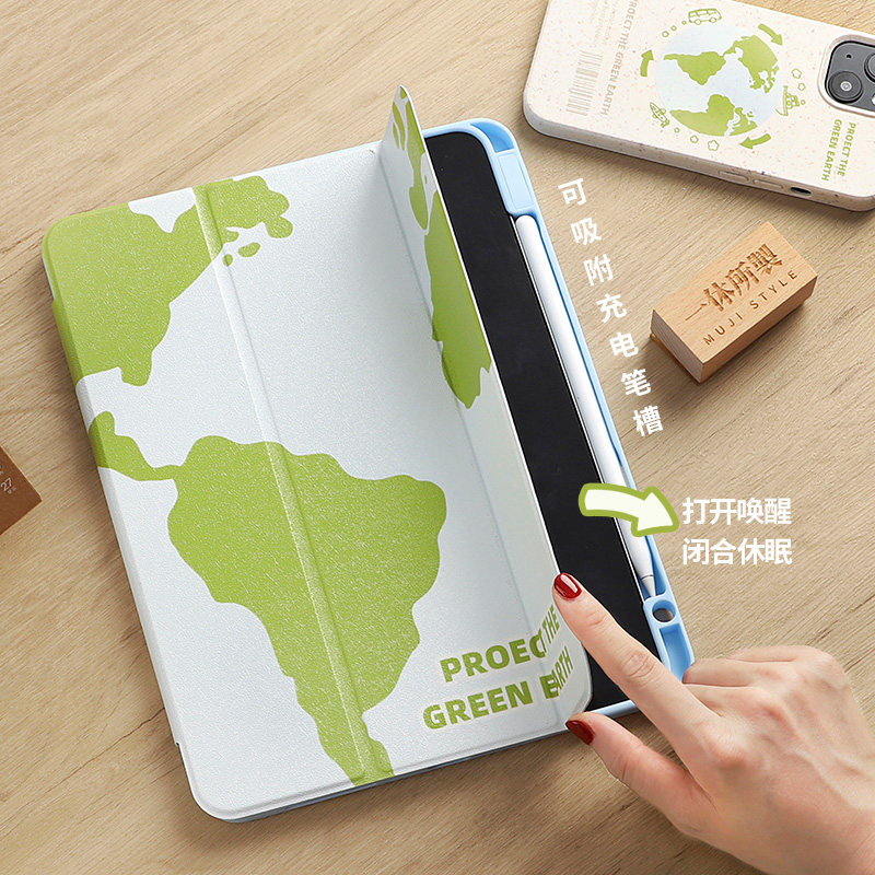 Green Earth iPad protective suit 2021 3-fold 11-inch Pro flat shell 10 2 Apple Air5 for 2020