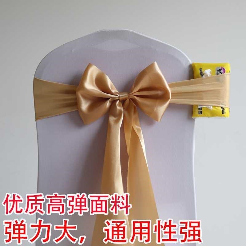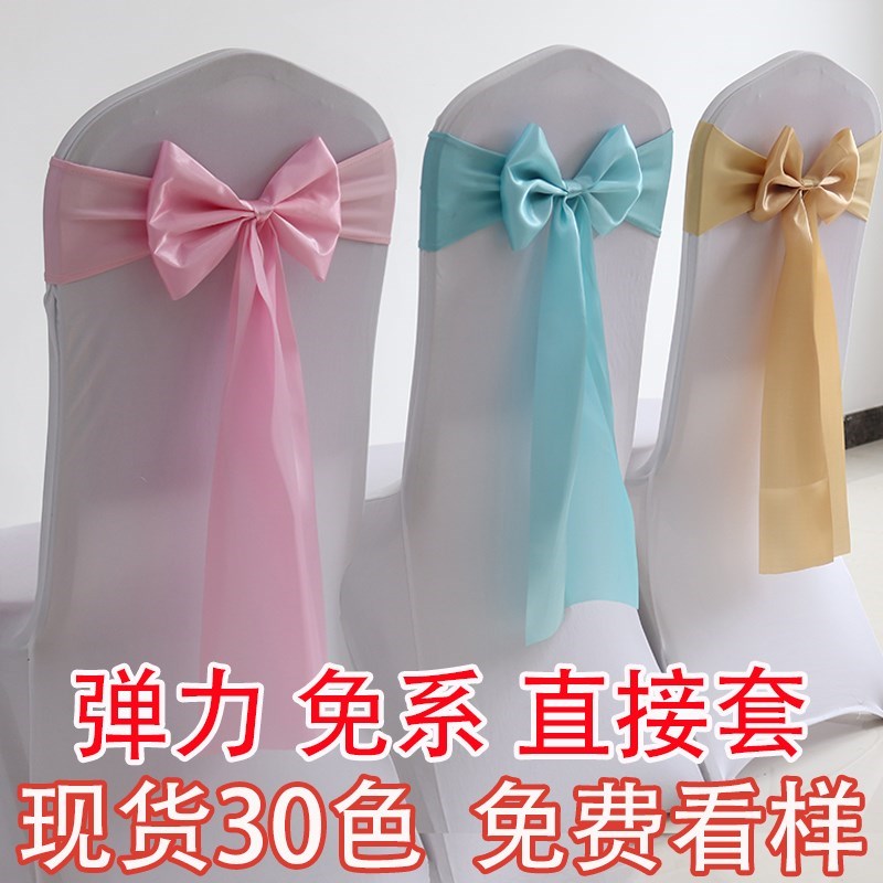 No-tie chair back flower bow tie chair Decorative Wedding Banquet Hotel Chair Floating Ribbon elastic Direct cover