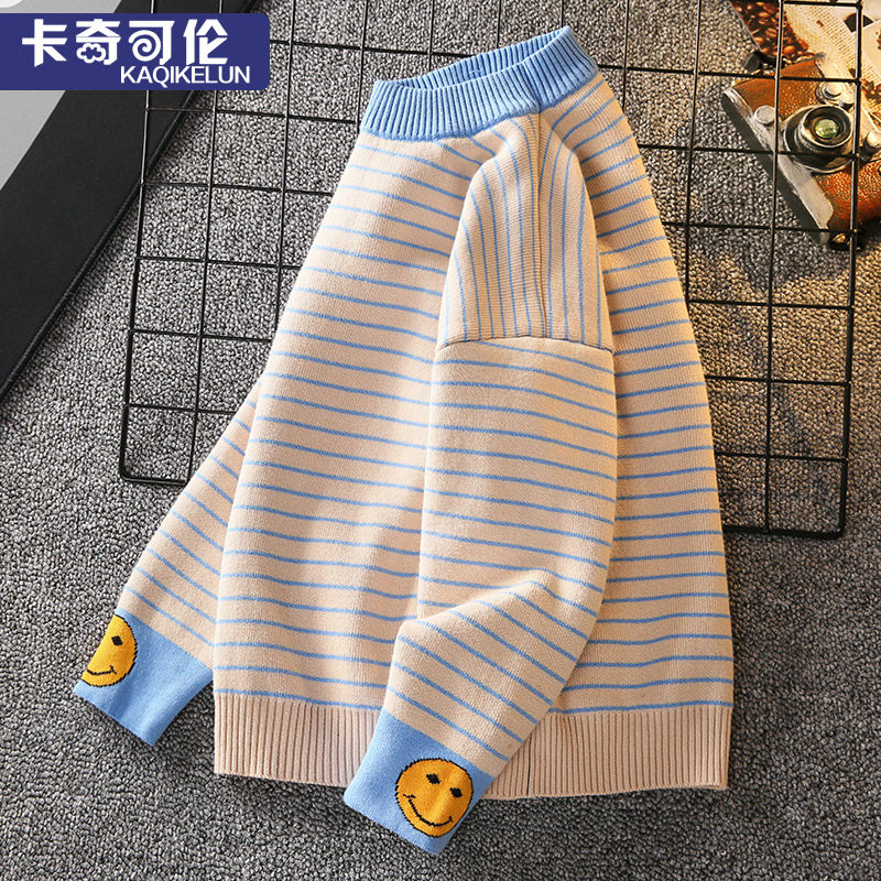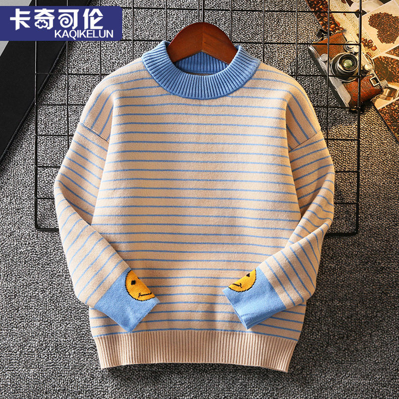 Boys sweater plus velvet one velvet autumn and winter 2022 new children's knitted bottoming shirt in the big boy winter boy tide