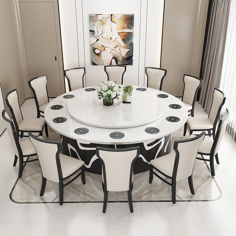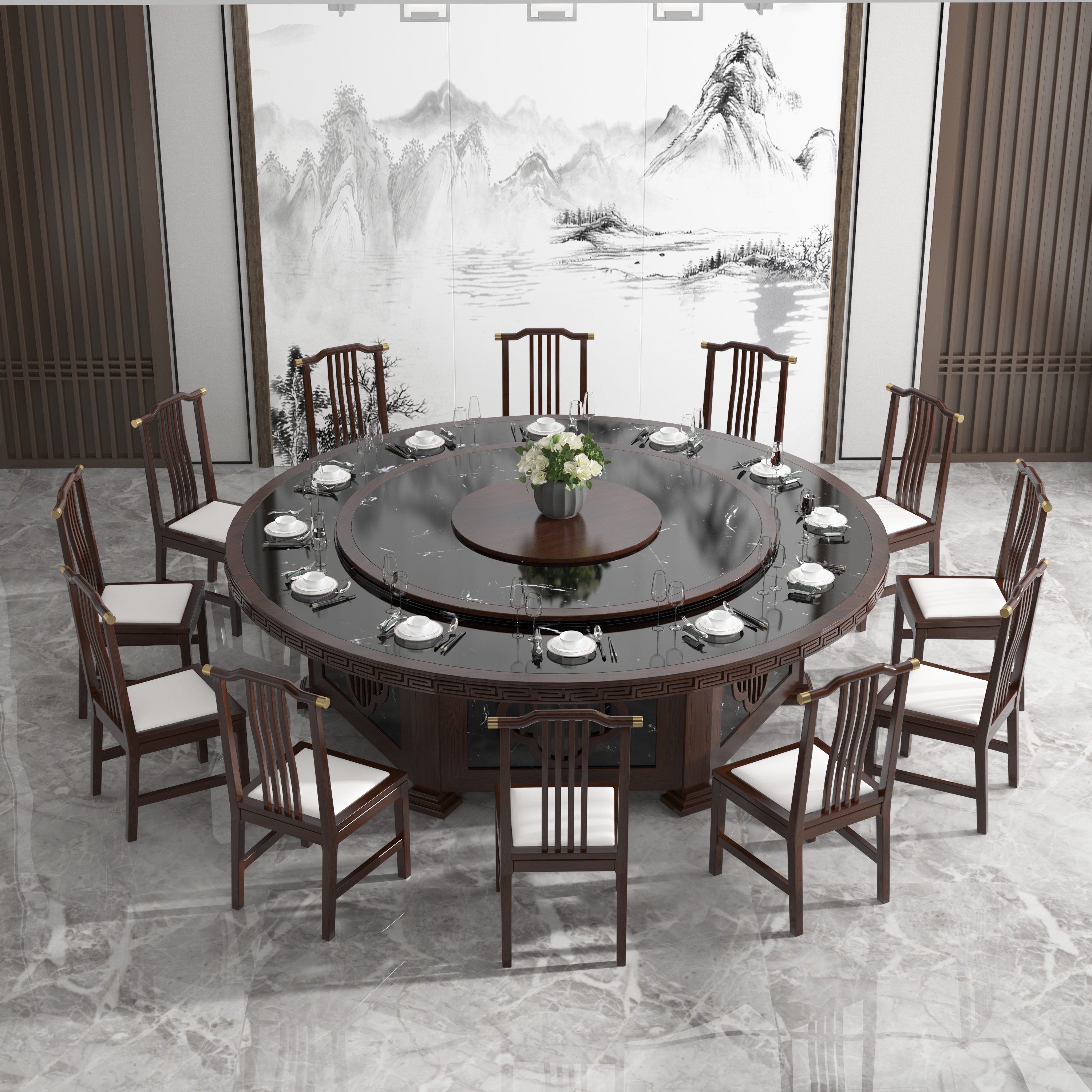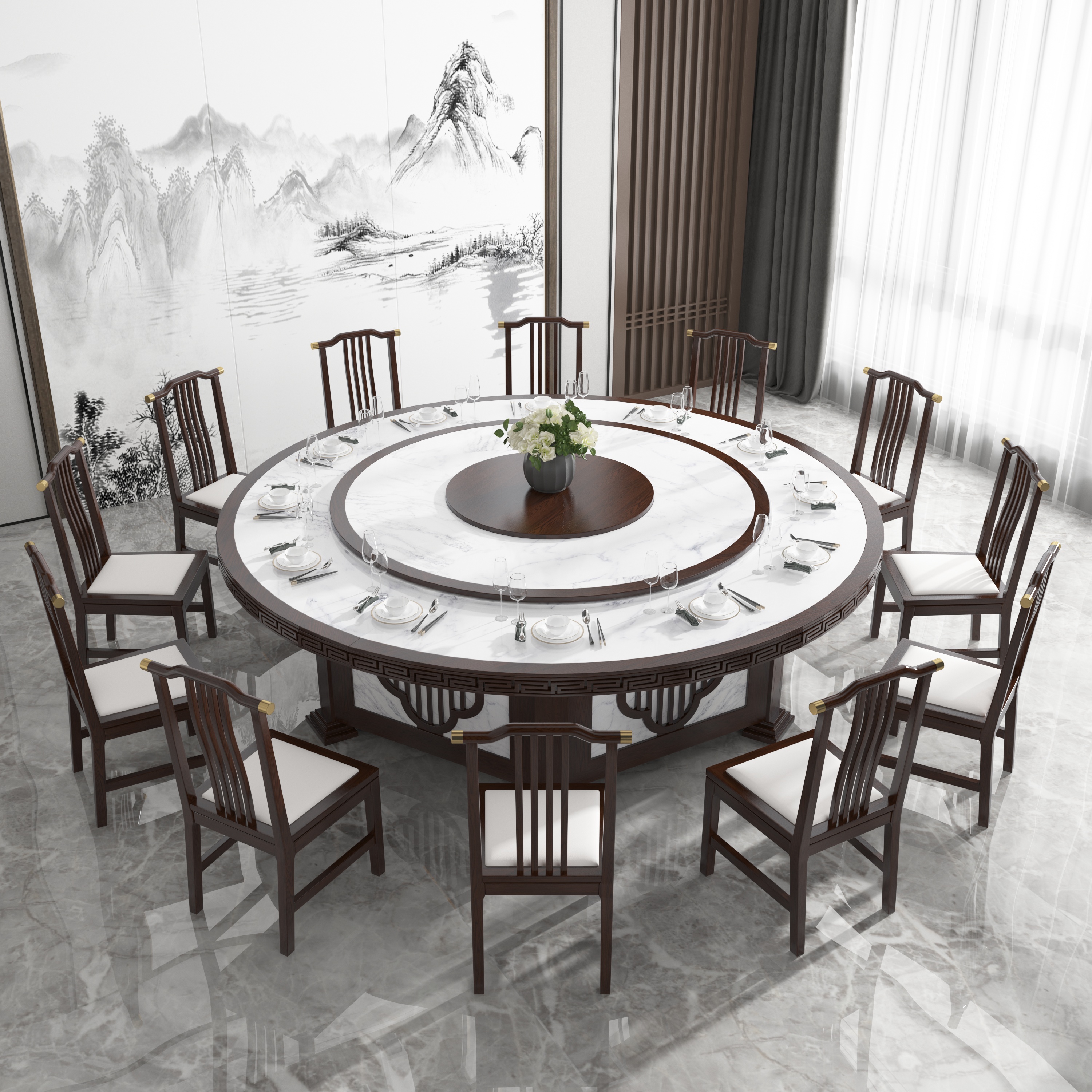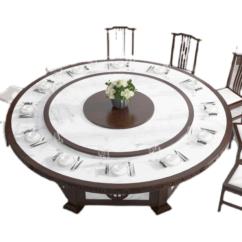 Hot boiler table Electromagnetic furnace Hotel Electric table Roundtable Solid wooden packing hotel New Chinese-style imitation marble