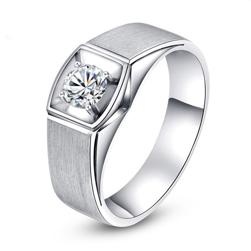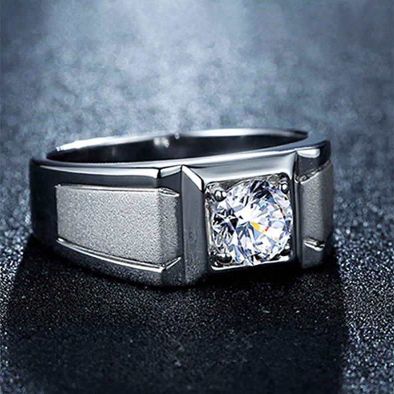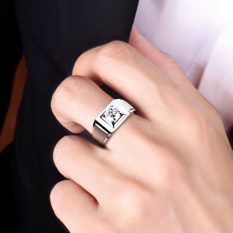 PT950 Platinum American Import Mosanstone Single Drill Sandblasting Ring Pure Silver Frosted 1 Carat Wedding Male Ring Ring