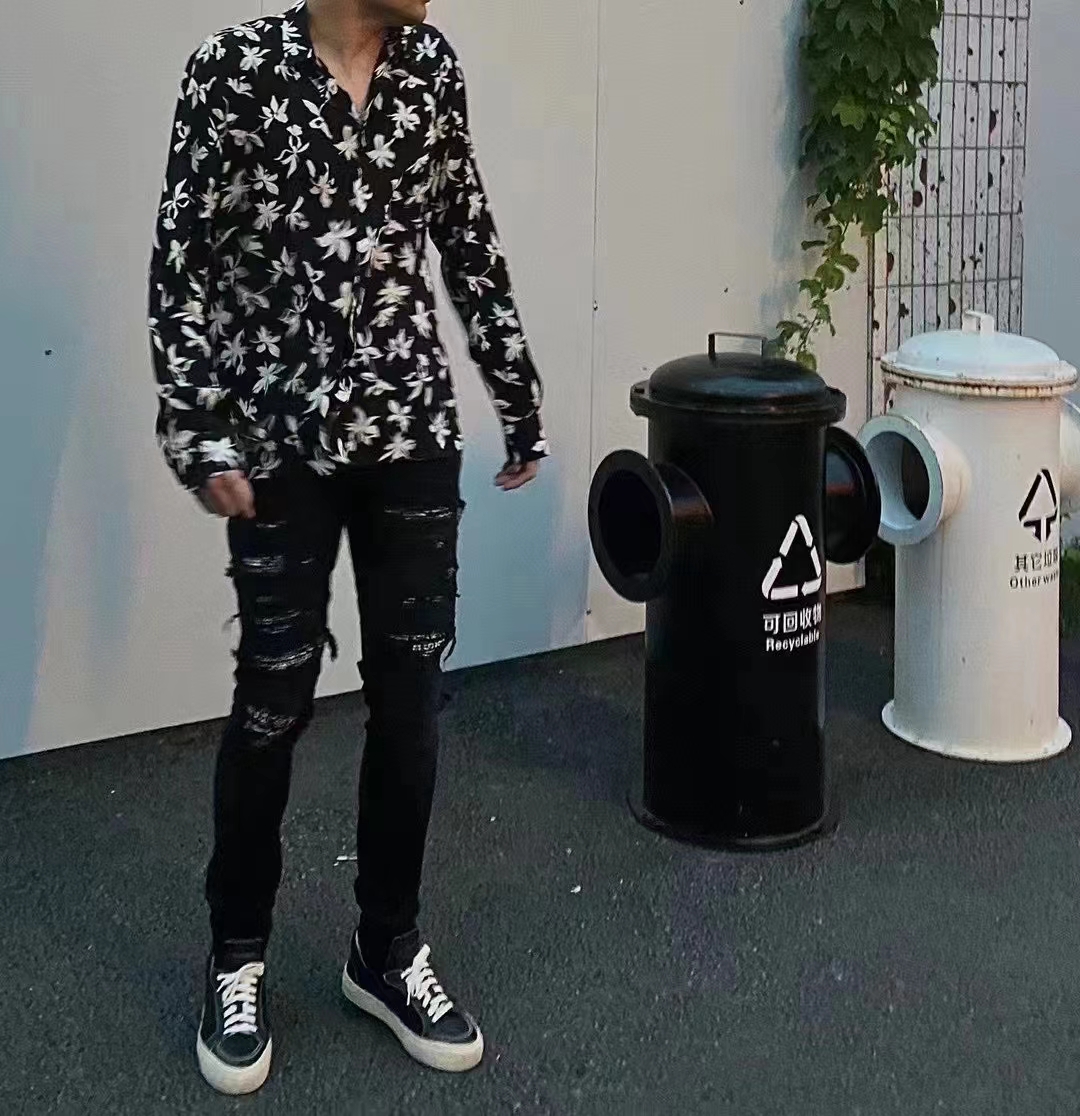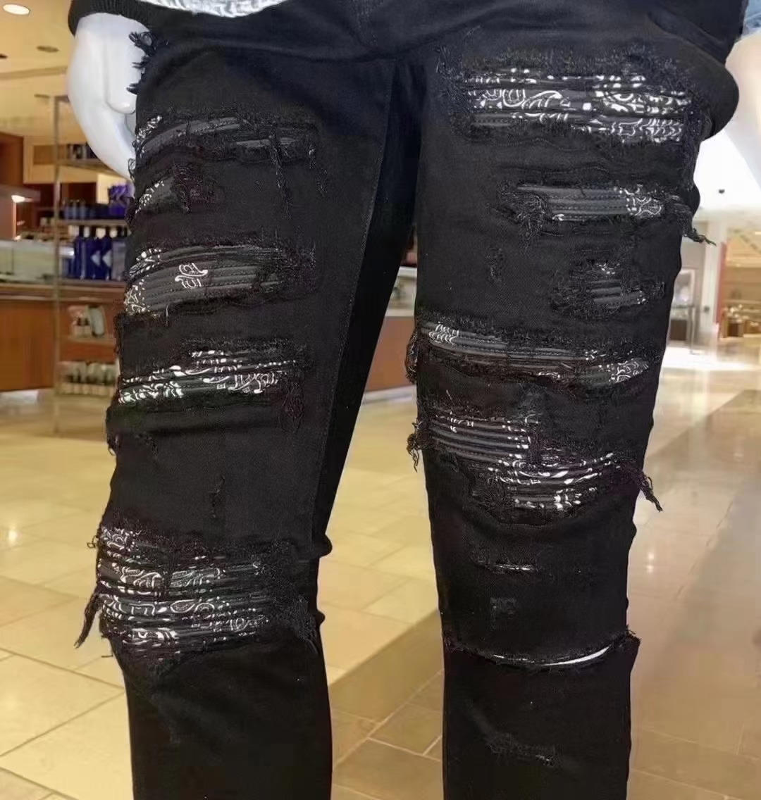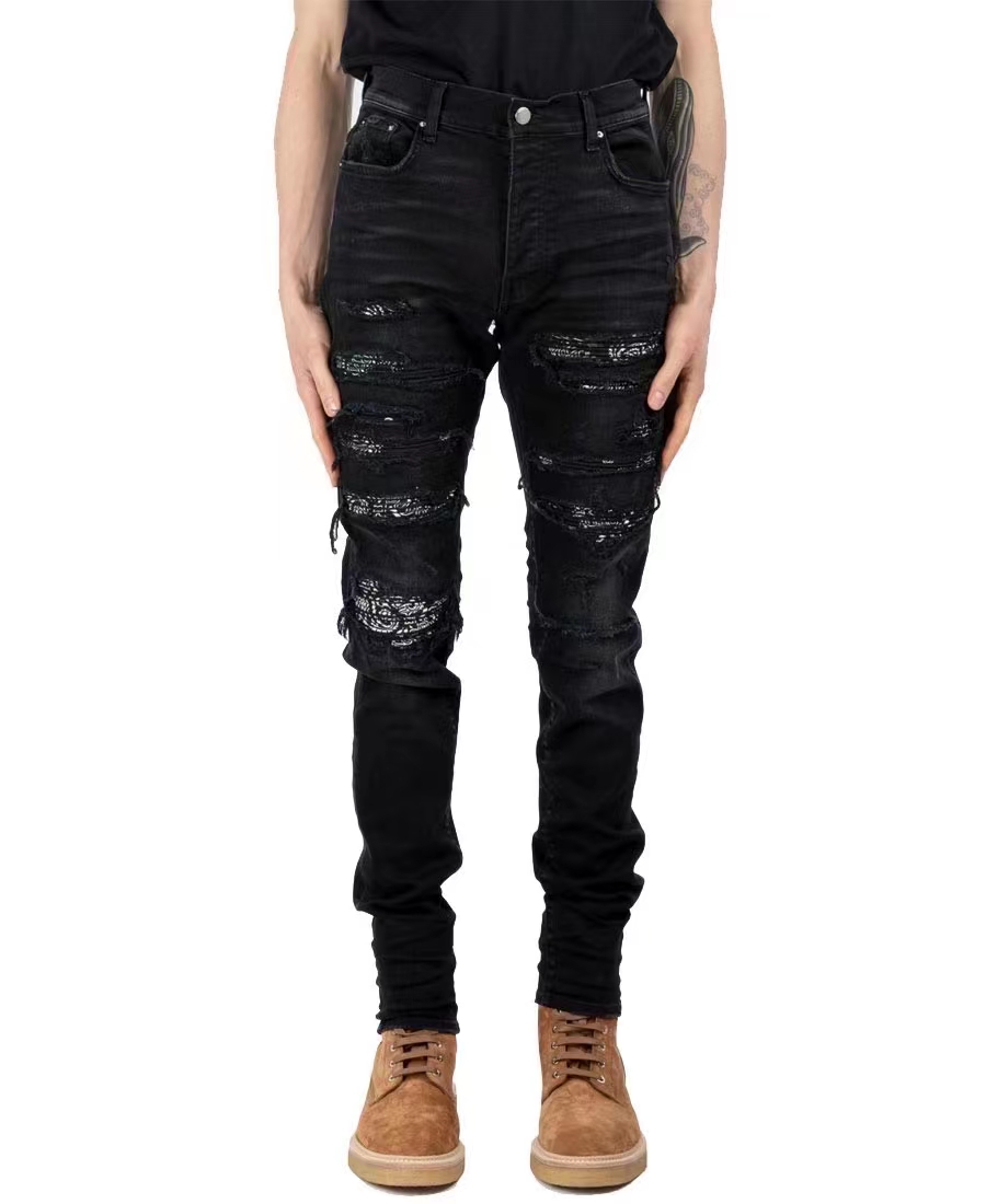 Roaring little eyes Amiri 21SS black cashew water washed to destroy the cave High Street Repaired Jeans