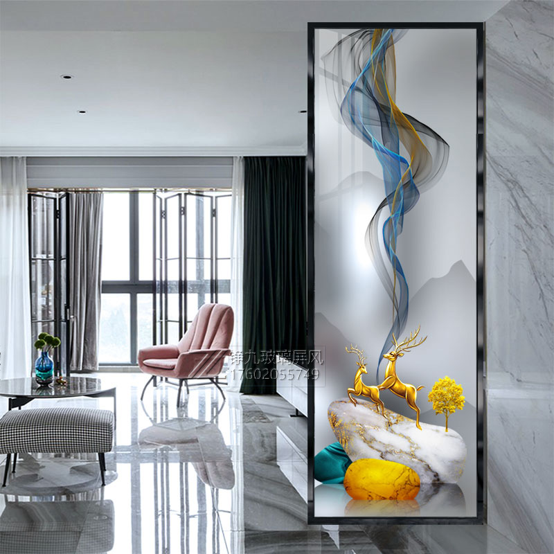 Order to make modern art Glass partition Screen Living room Xuanguan Light and luxurious Makeup Room Steel process Painted Light Transmission