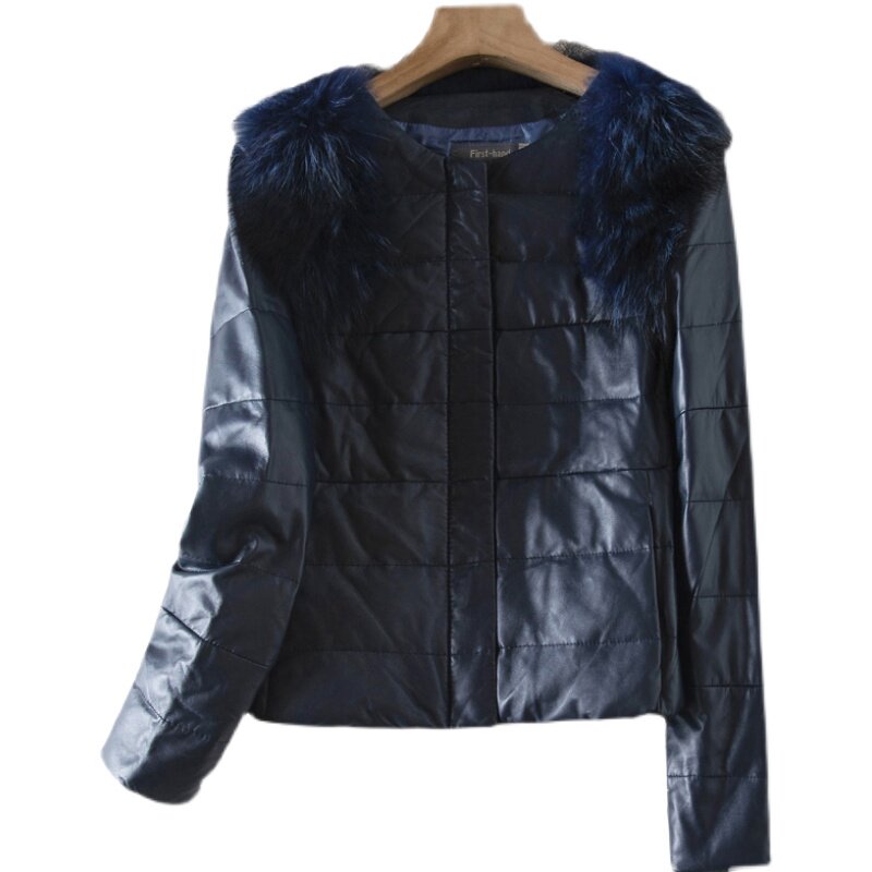 New high-end thick head sheep skin fur feather coat with fox collar short leather jacket