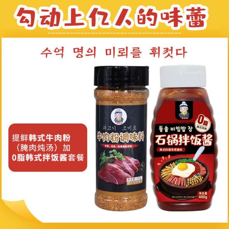 400g0 fatty Korean mixed rice sauce 190g Korean style beef powder seasoning sea tunic 1*80g mixed with rice sauce 400g * 1 mix of rice sauce 1 bottle of beef powder 1 bottle of package