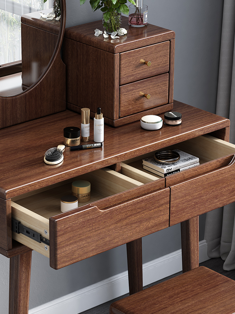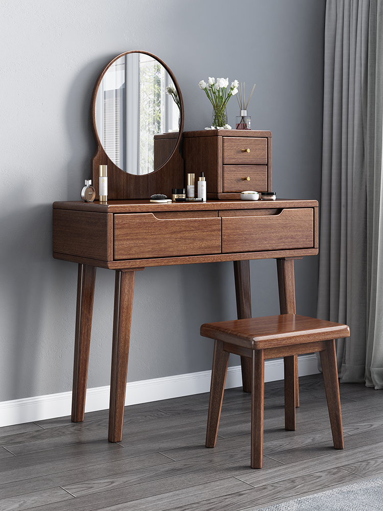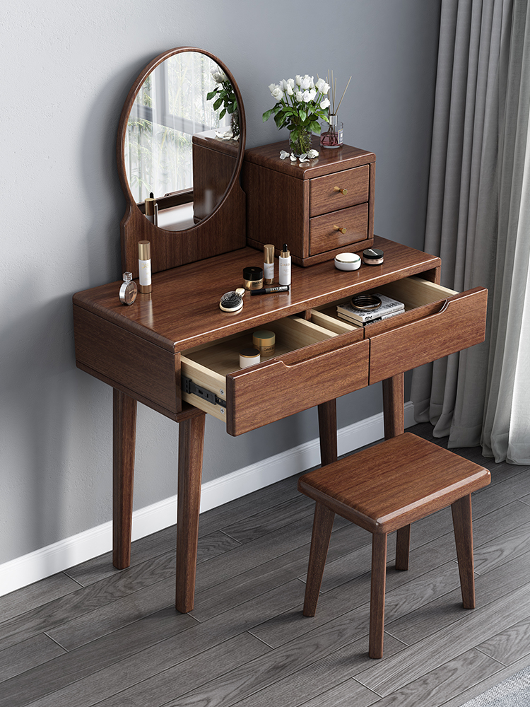 New Chinese style solid wood dressing table economical walnut bay window small apartment bedroom assembly with mirror storage makeup table