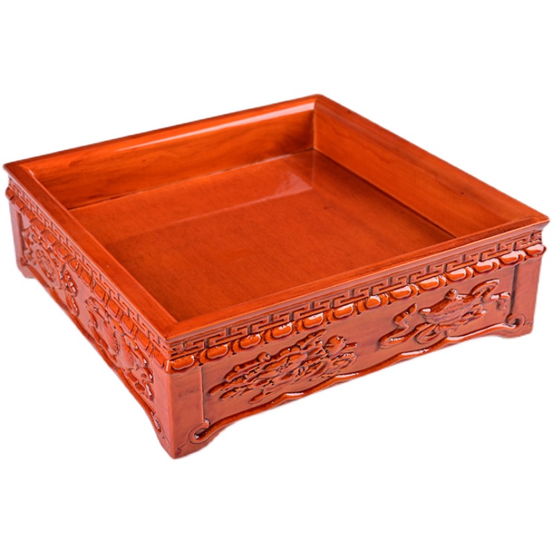 Puxian Willing to Hide Solid Wood Square Fruit Pan Crisp Oil CAKE BOX LIVING ROOM DECORATION RETRO NATIONAL EIGHT AUSPICIOUS LARGE NUMBER