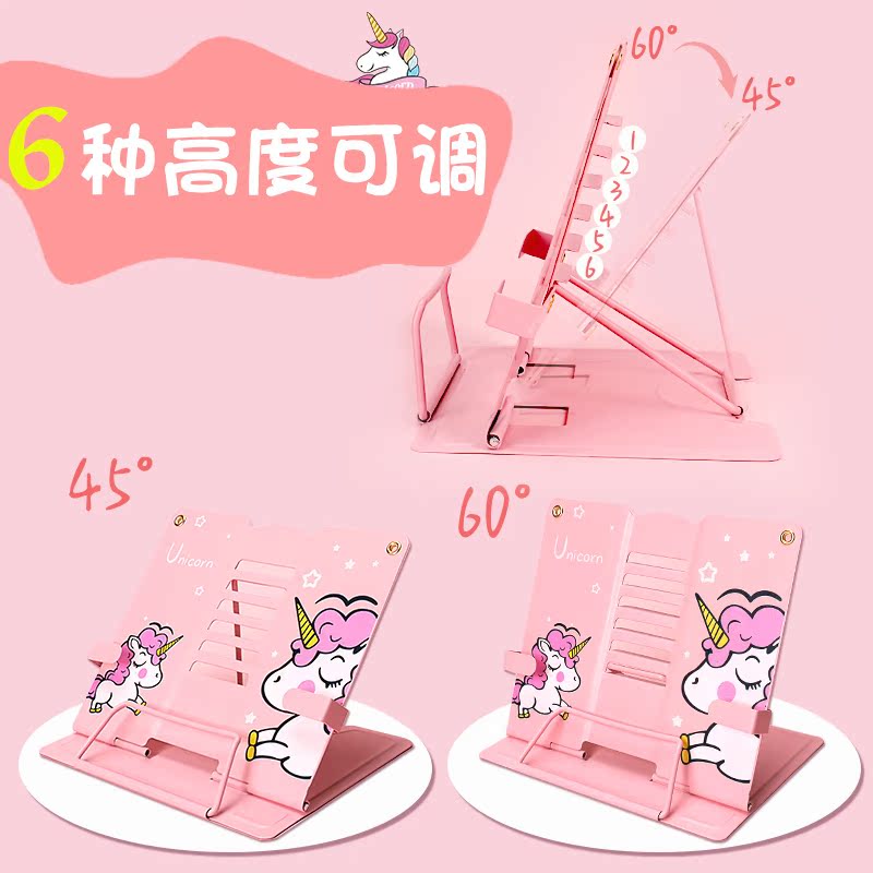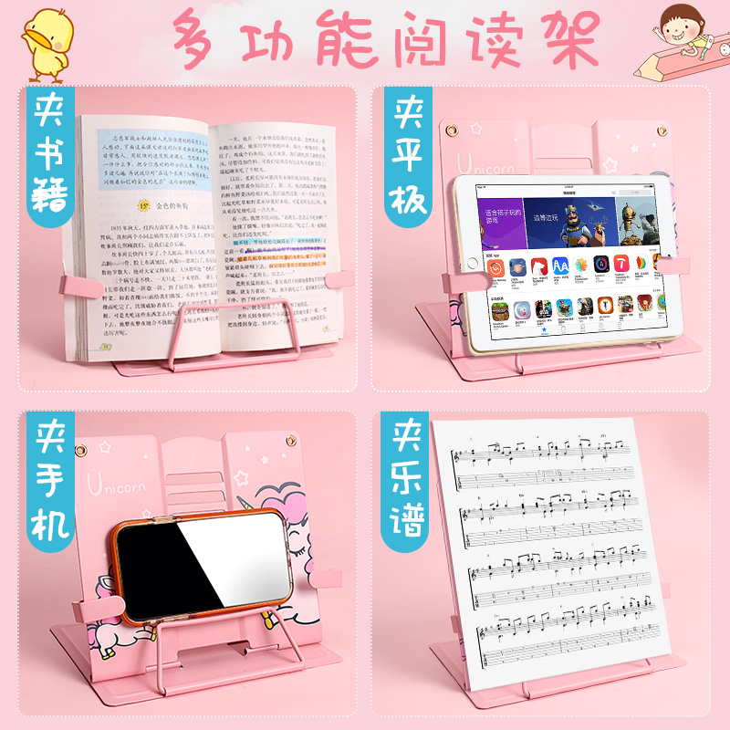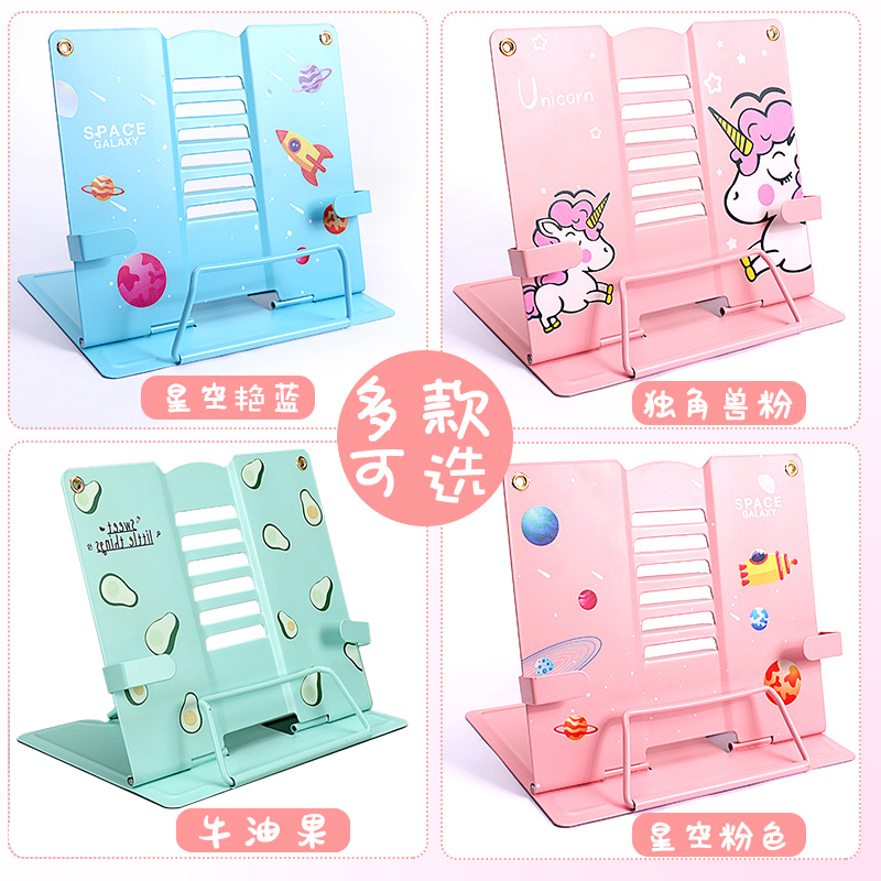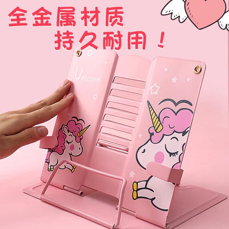 Children's elementary school students with metal cartoon reading shelves adjustable desktop clip books morning reading books and books creatively portable protection cervical vertebrae research and reading artificial stand