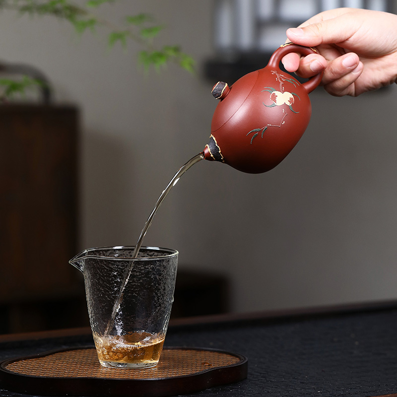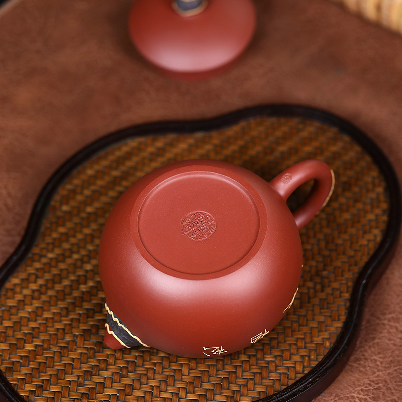 New products Clay Painting Siisch] Yixing Purple Sand Pot Pure Handmade Teapot Fully Hand Colored Drawing Appliqua Kungfu Tea Maker-Taobao