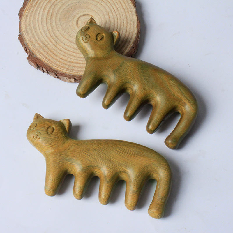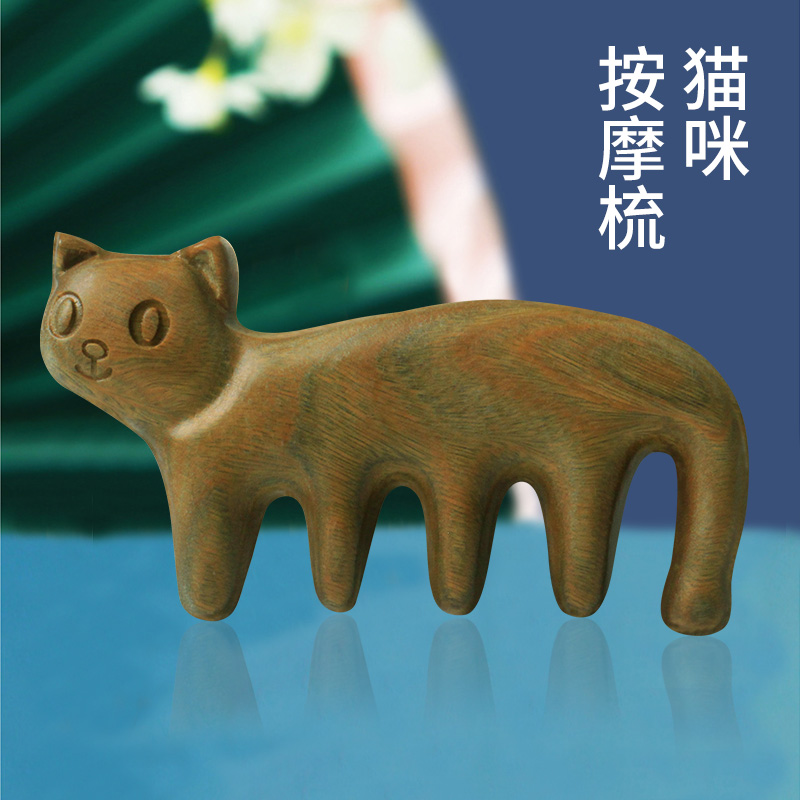 Natural green sandalwood comb anti-scalp electrostatic massage comb width tooth household comb with comb inscription