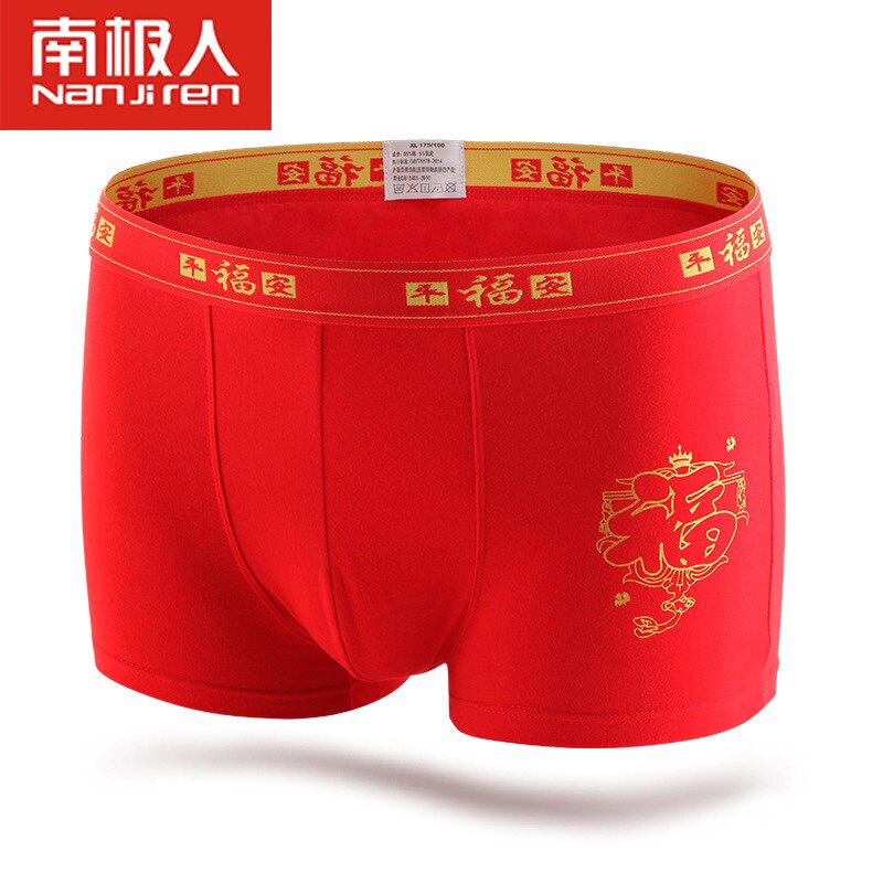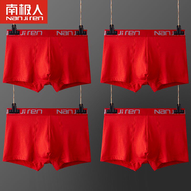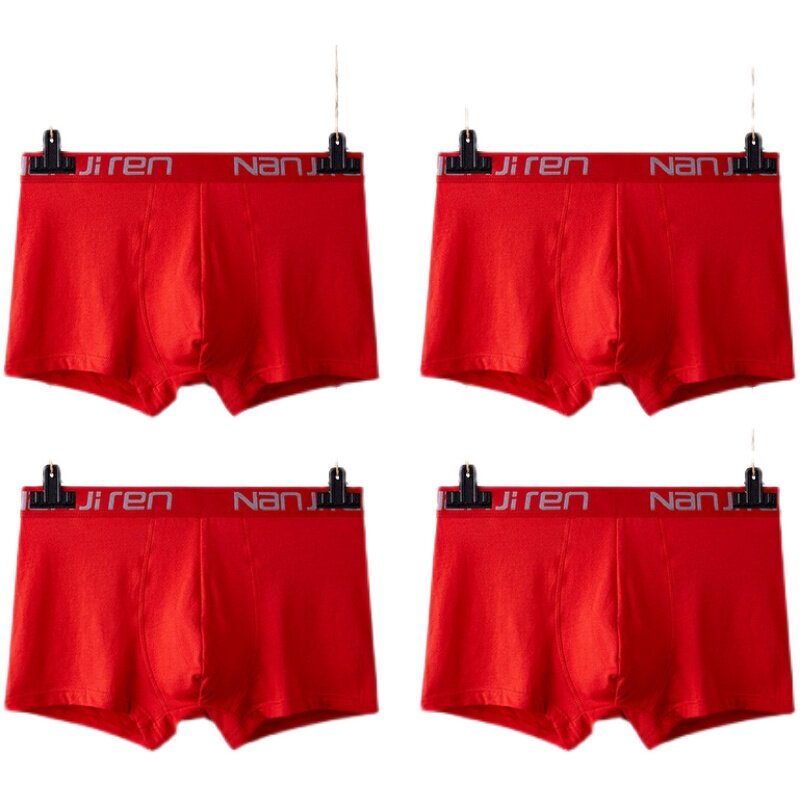 4 boxes of Nanjiren men's pure cotton underwear cotton fabric youth red boxer simple mid-waist solid color