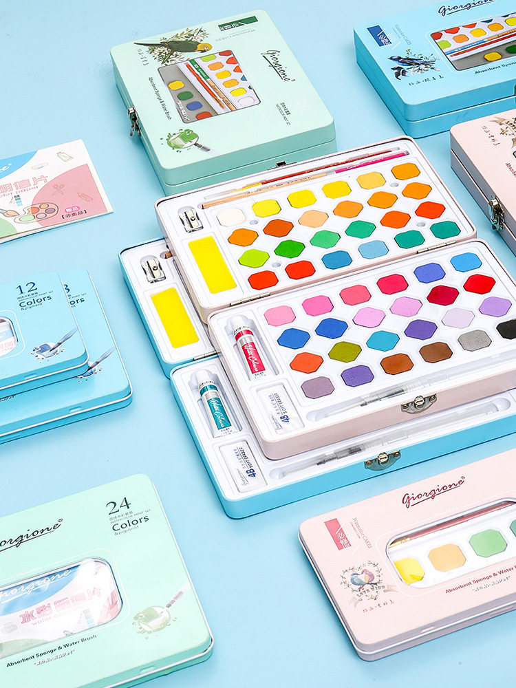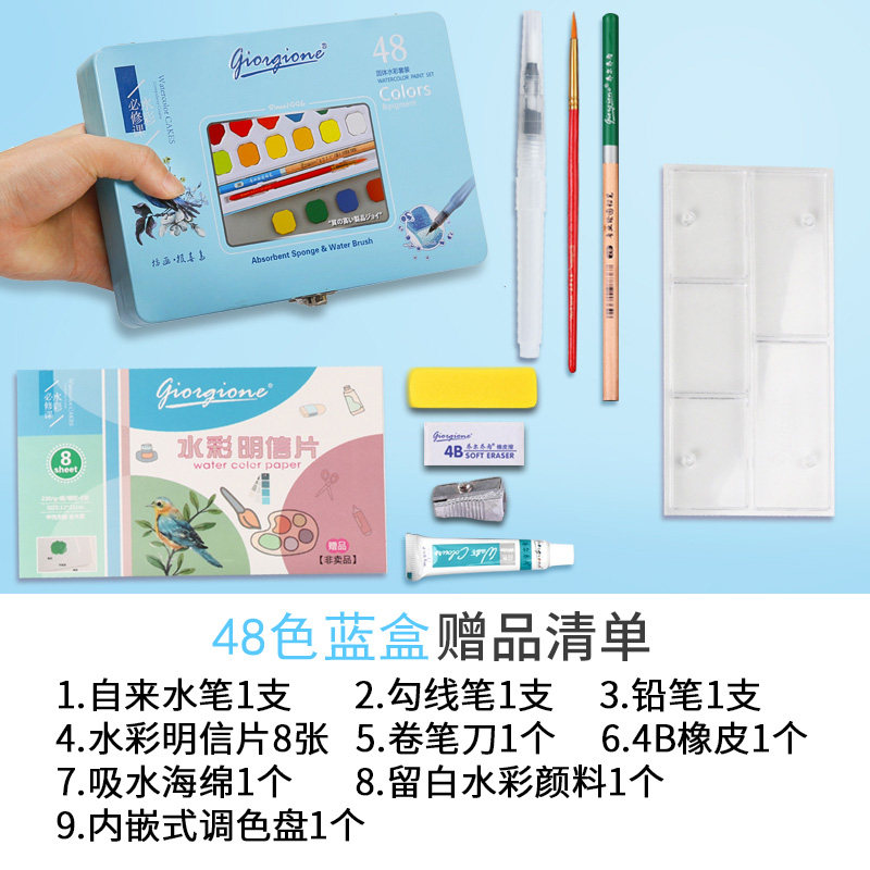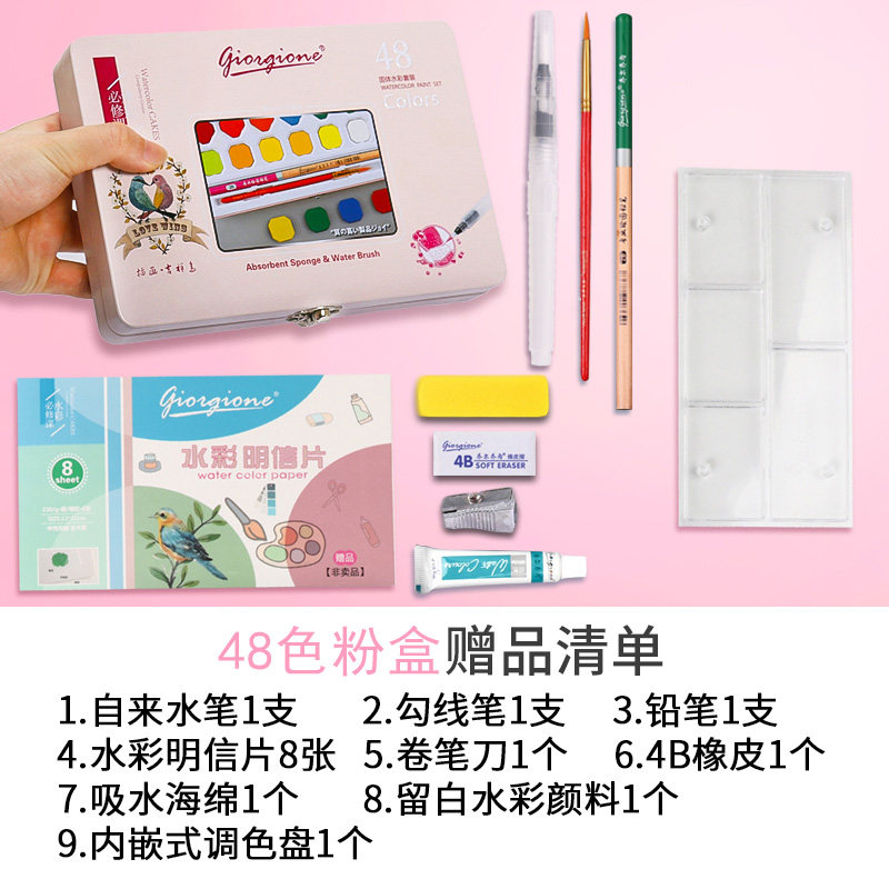 Joercione 48 color bird language series solid watercolor water powder painting paint paintbrush suit students with beginners fine arts students with children's painting supplies washed portable shake-to-sound same-Taobao