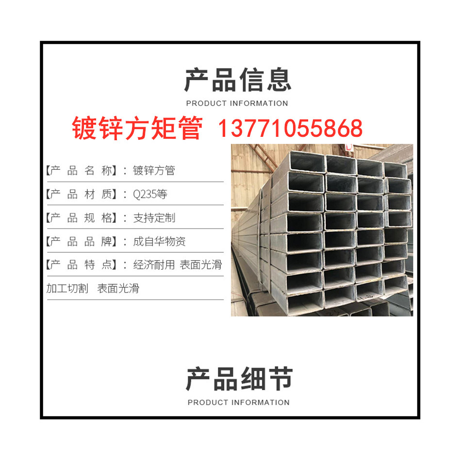 Cold hot galvanized square pipe rectangular pipe iron square pipe 40 * 4060 * 60 50 * 5080 * 80 steel band pipe 100 * 100