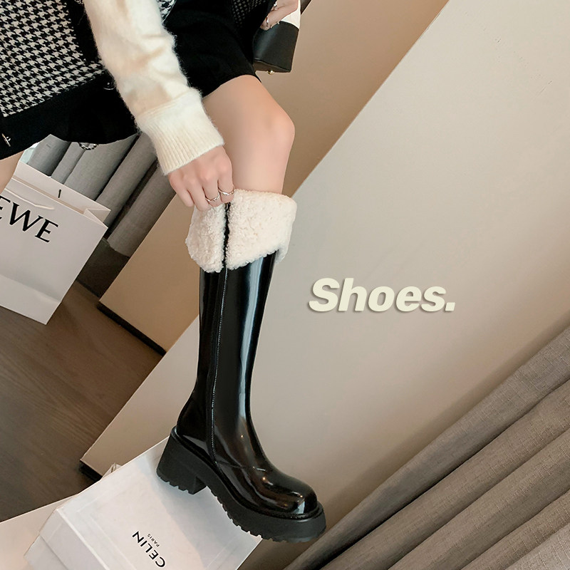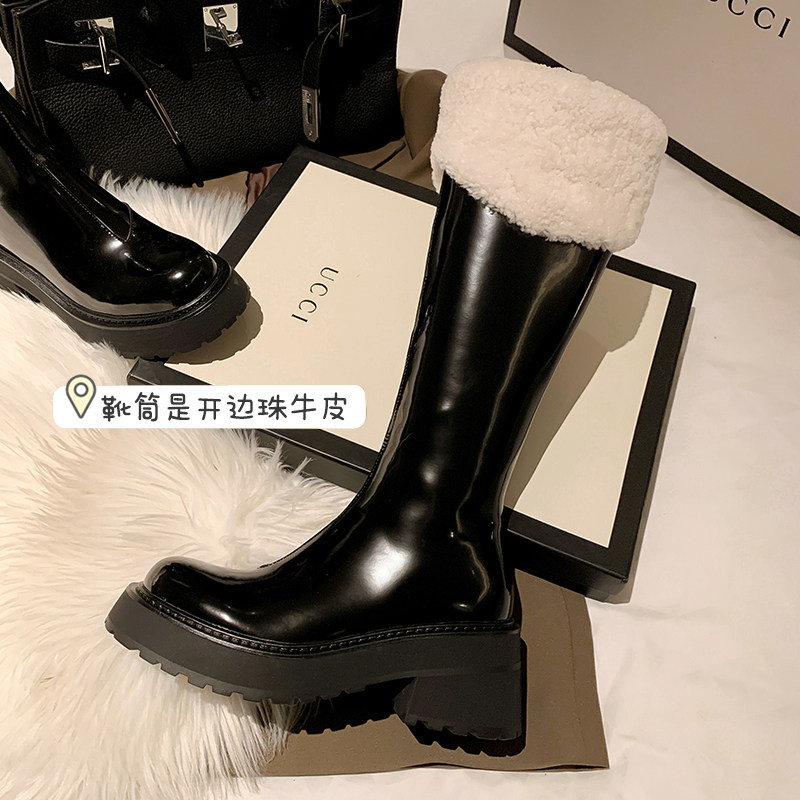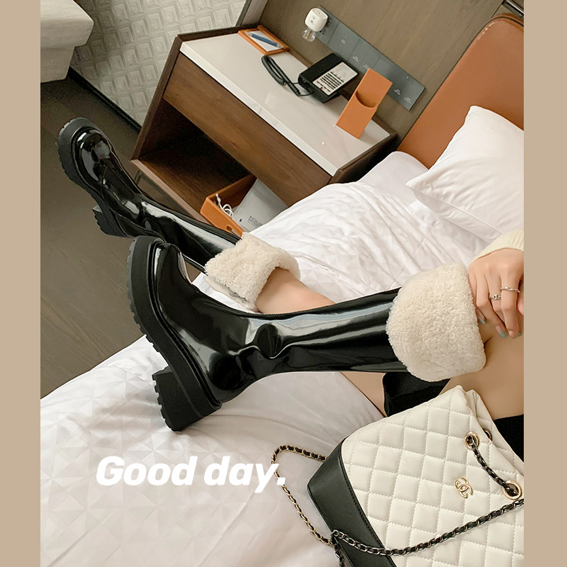 "Miss Chen" 2022 autumn and winter look thin boots ~ Knock on the texture and warmth, thick soles and heightened snow fur boots for women