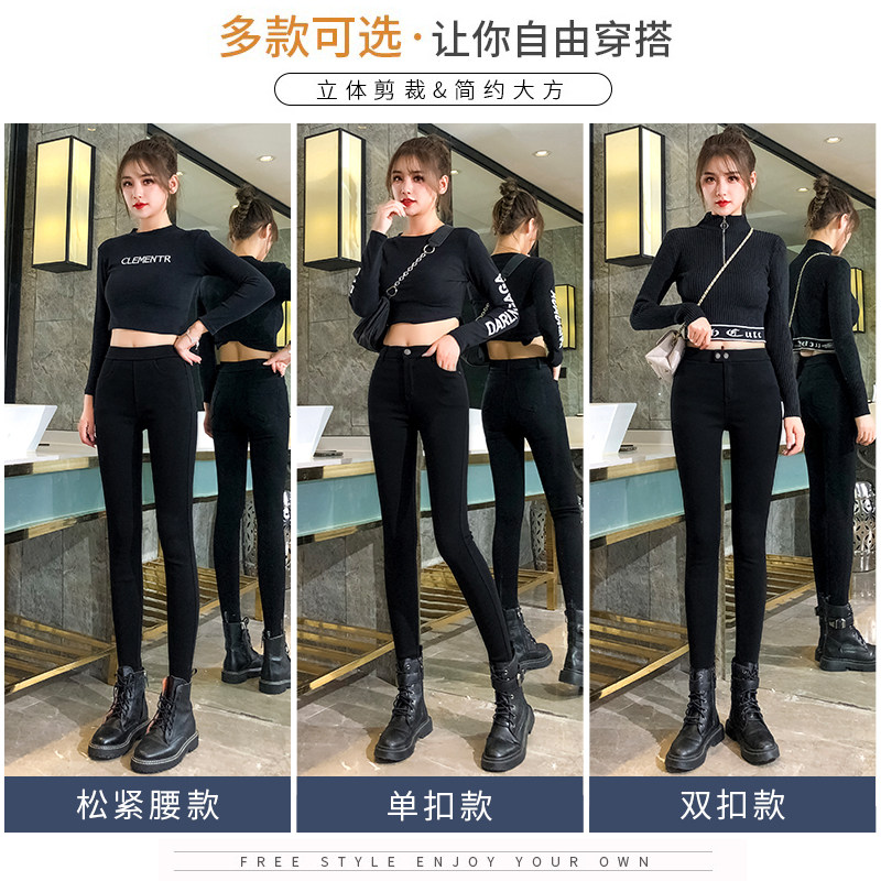 Black inner pants women's outerwear plus velvet pants women's cigarette pants slim high waist small black pants 2021 autumn and winter new style - Taobao
