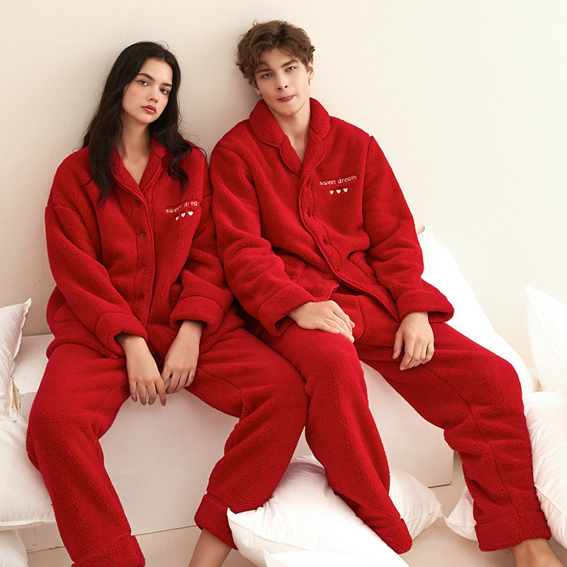 Newlywed couple pajamas women's wedding festive high-end red coral fleece home service men's autumn and winter suits