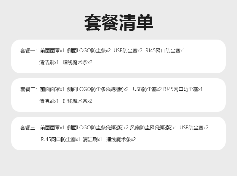Package 1 Mask Side Dust plug 2 Mask Side Mask Side Magnetic Suction (Fan-free) Package Three Mask Side Magnetic Suction (Magnetic Suction Fan)