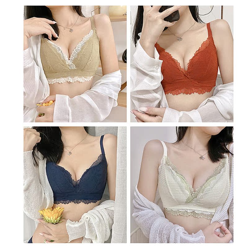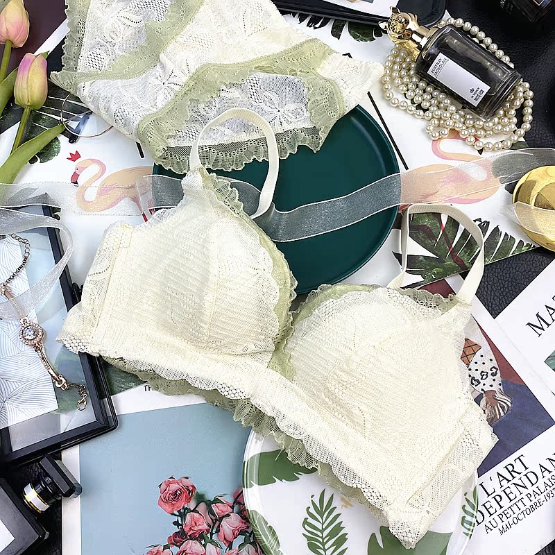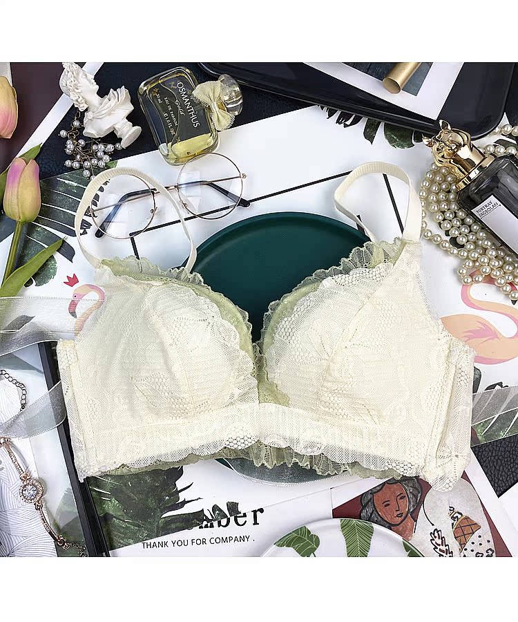 Poly-Woo Underwear Female small bra Sweet Sweet Lace Soft Sweat and sweat No steel ring to receive Breast Girl Day Lingerie Suit