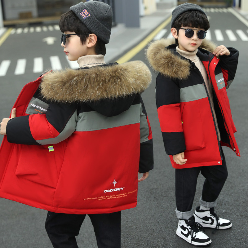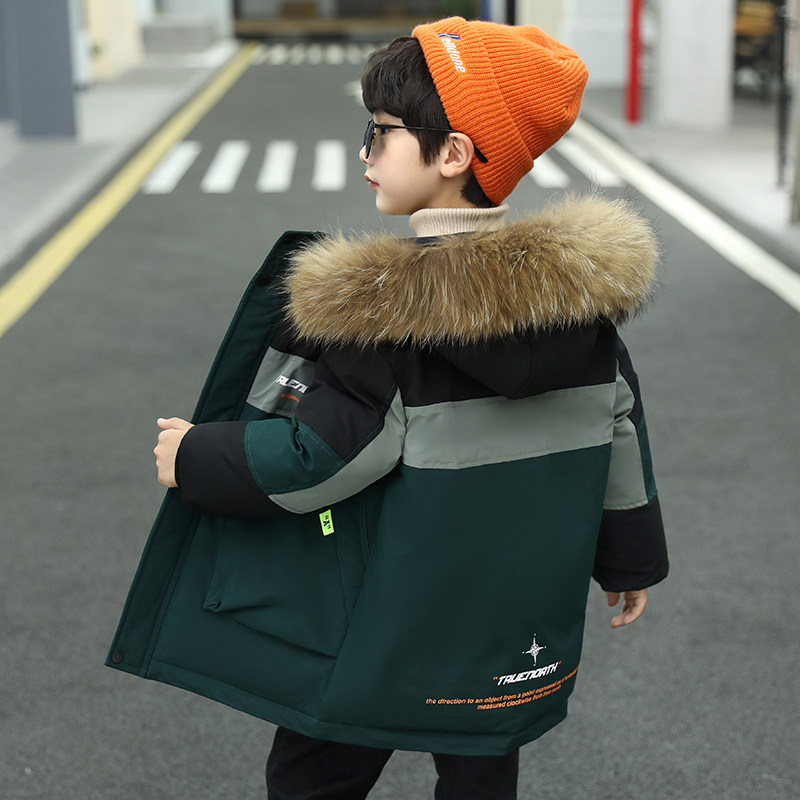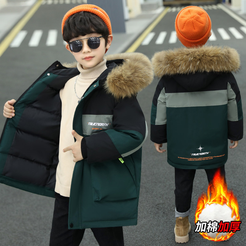Children's cotton coat boy's medium and long version of cotton clothes tide 2021 new Western style winter clothes boy thickened coat middle-aged children