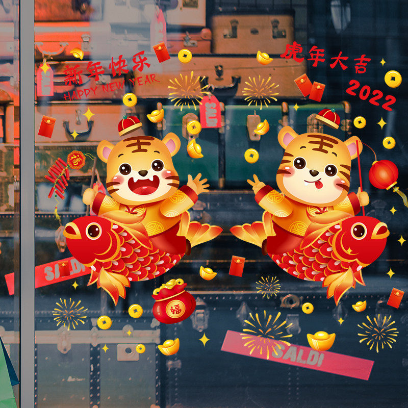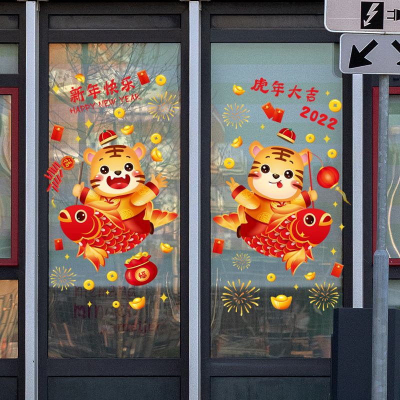 Tiger years Daggi Spring Festival Lunar New Year wall stickers waterproof glass windows flowers post New Year's Day mall festival placement company