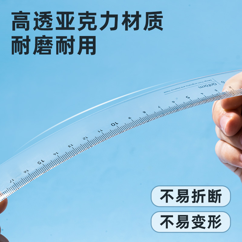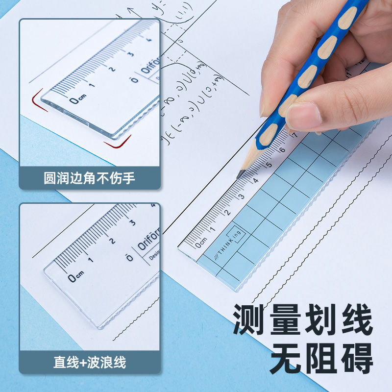 Powerful transparent ruler with wave 15 18 20 30cm Primary and middle school students measure and draw with multi-specification combined rulers and multi-pack 79751 straight line wavy line drawing test recommendation