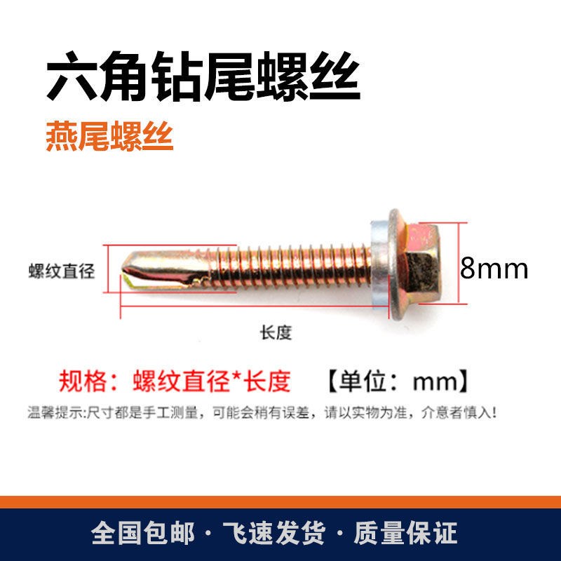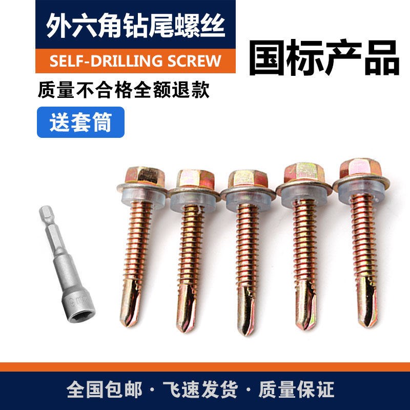 Hexagonal foreign standard drill tail wire dovetail wire self-tapping self-drilling screw 20 color steel tile with pad screw