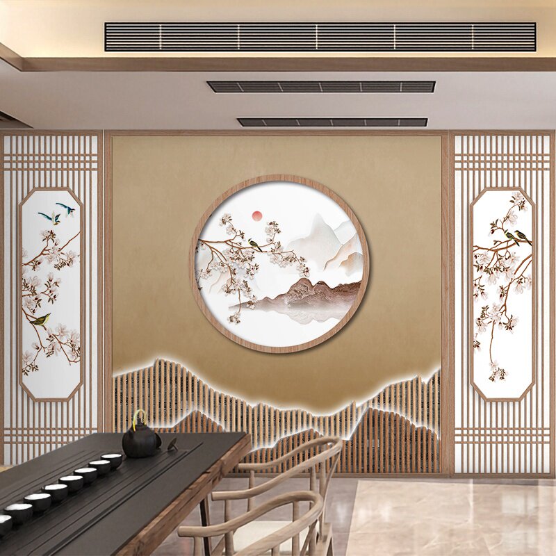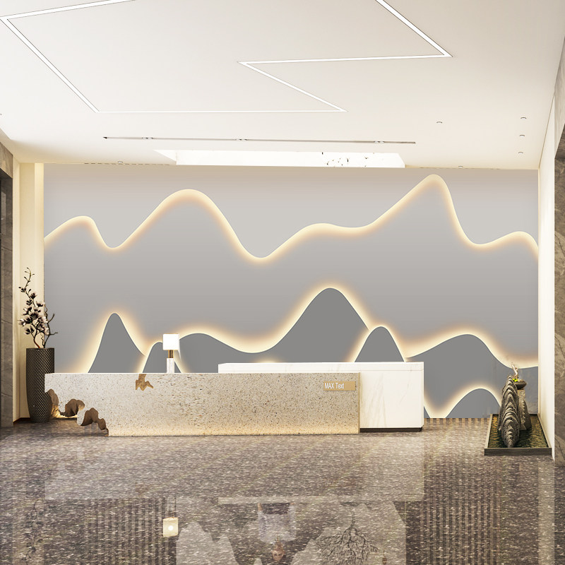 New Chinese Modern Luxury Bamboo Fiber Hotel Lobby Integrated Wall Board Office Corporation Front Desk Decoration Fashion