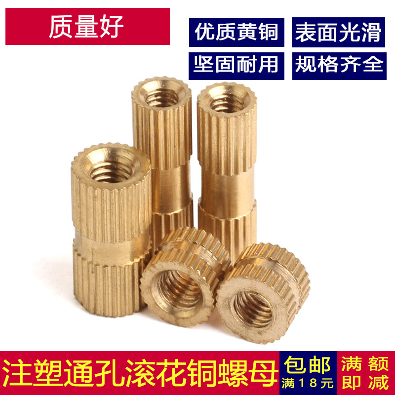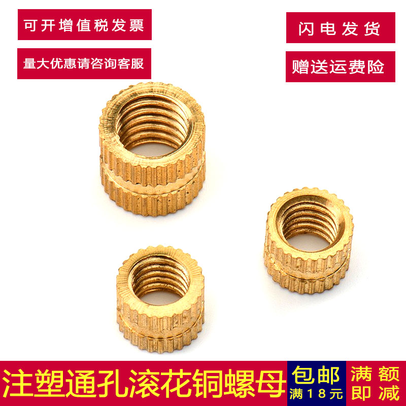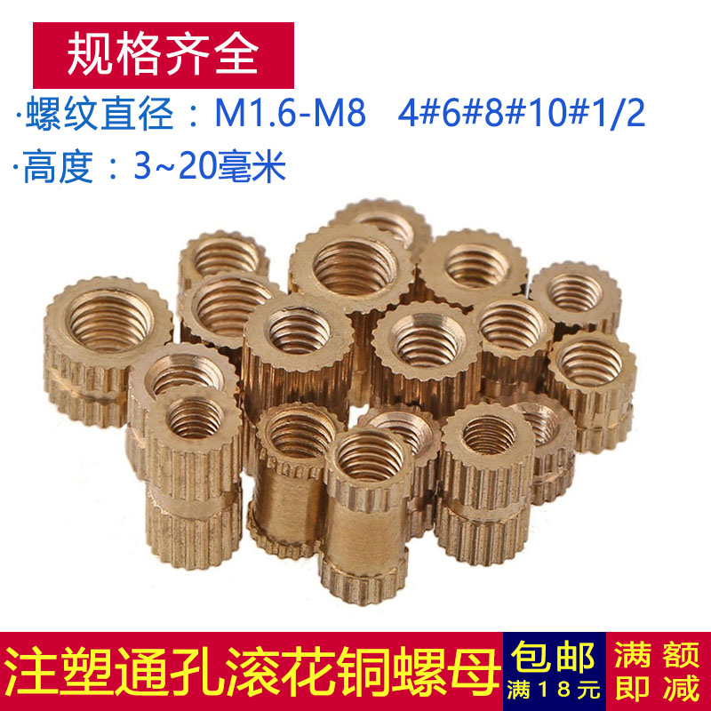 Injection plastic pre-buried copper inlaid brass rolling nut through hole M1 0*5x6x7x8x10x20