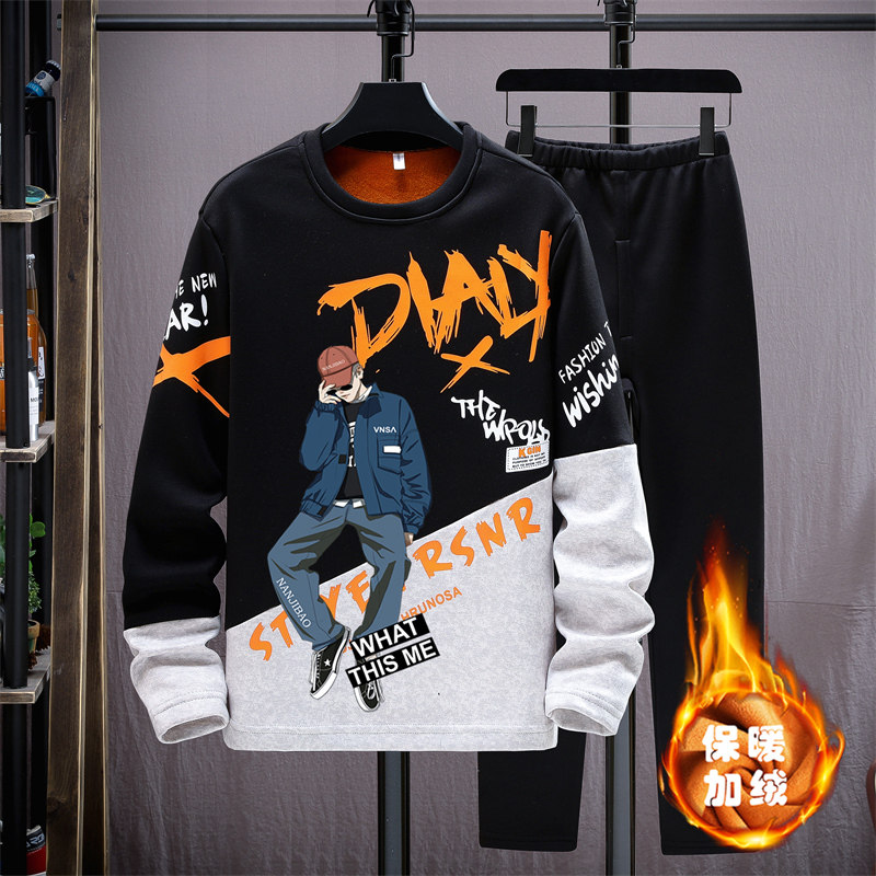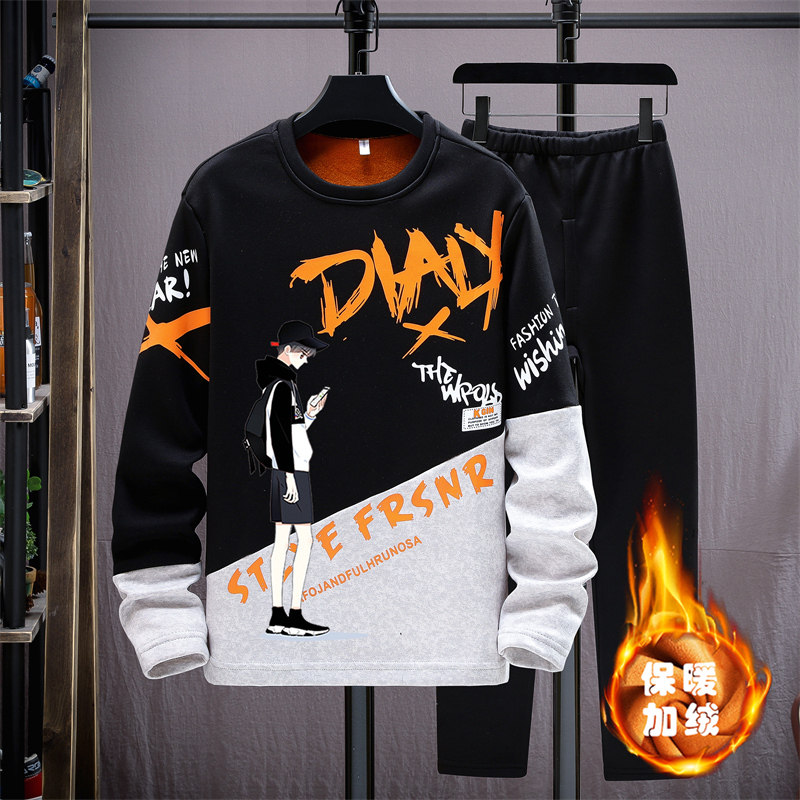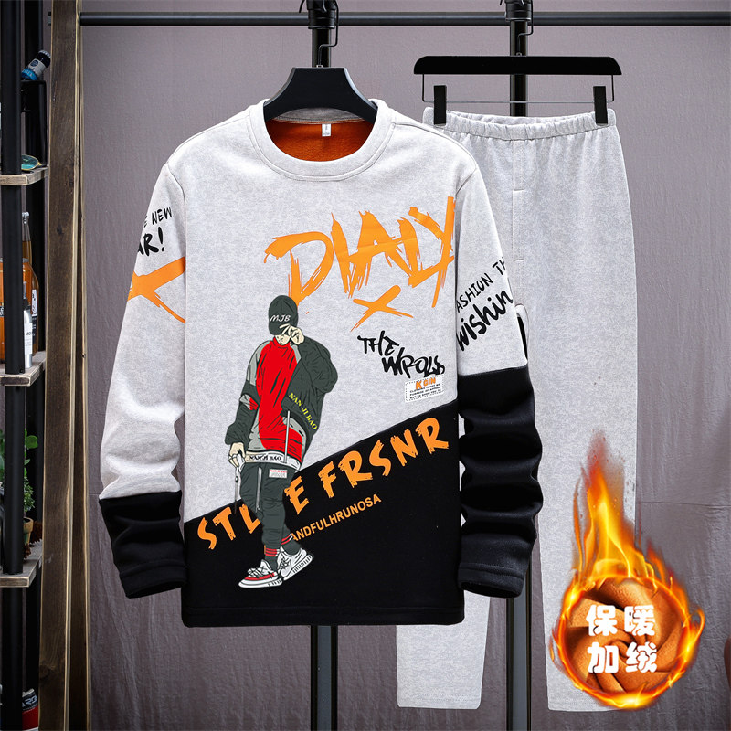 Teen Warm Clothes Men's Winter Plus Suede Thickened Outwear Middle School Students Autumn Clothes Sanitary Pants Great Boy Underwear Men Suits