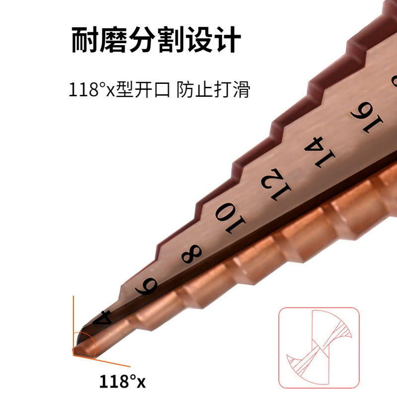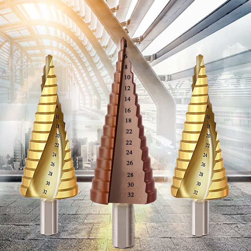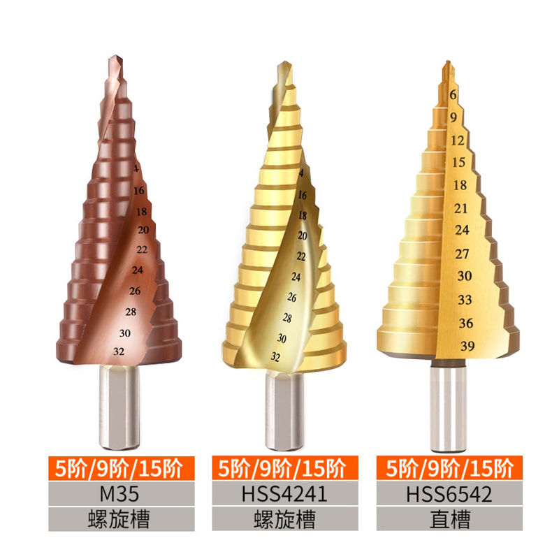 Seiko 6-60mm Large size Drilling Machine High Speed Mesh Spiral Groove Ladder Pagoda Drill Triangular Drilling multifunction drill