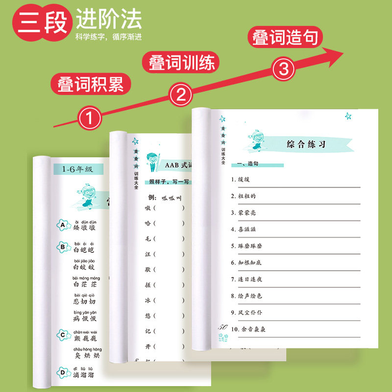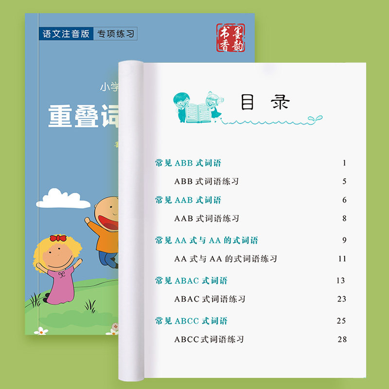 words accumulation grand total training overlapping words aabb abab elementary school students idioms special syncs post first grade 23 Language volume word book with pinyin Four word words Inductive Post Block Letters Elementary School Children