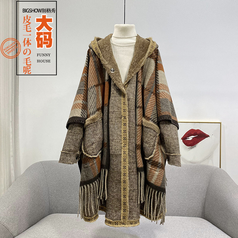 "Dream square" imported fur jacket female large size fur 200 catties female fat mm long hooded