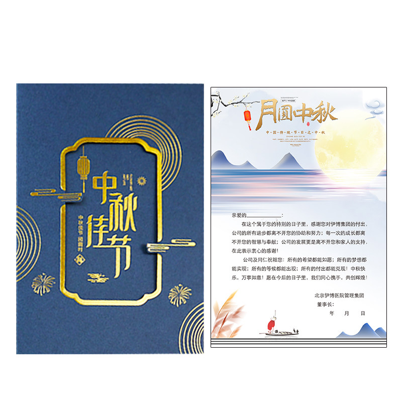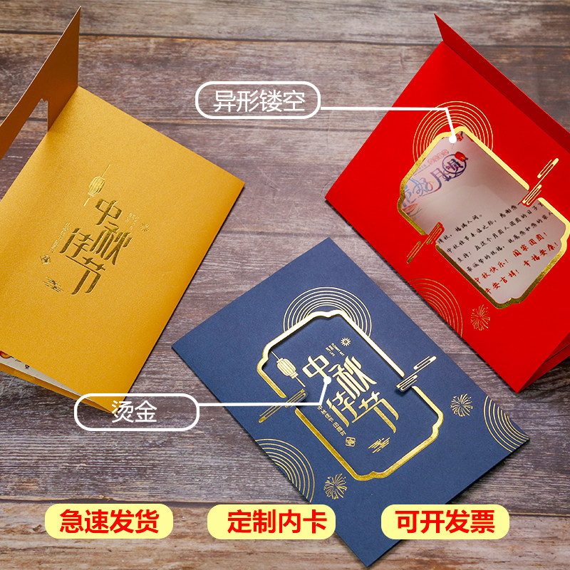 2022 Mid-Autumn Festival greeting card custom Chinese style bronzing hollow handwritten blessing to send employees and customers business high-end films