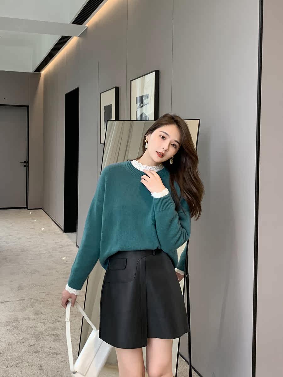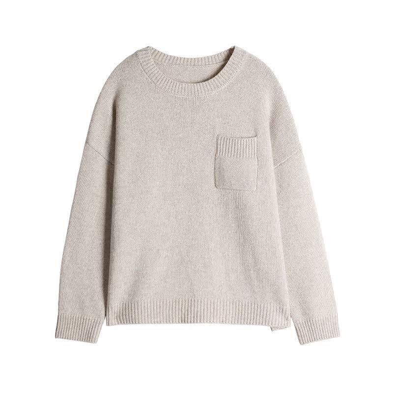 K Sister (pocket cashmere shirt) 30 cashmere 45 wool blend round collar long sleeve pure color sweater blouse