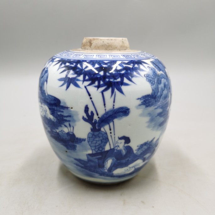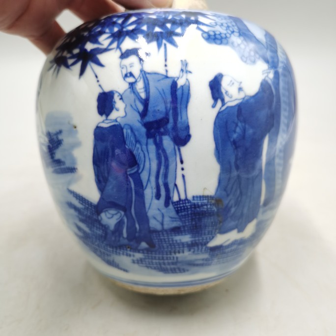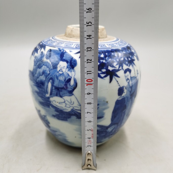 Late Qing Dynasty Period of Qing Dynasty Glaze Bamboo Forest Seven Xian Tea Leaf Jar Antique Ancient Play Old Stock Old Stock Old Goods Collection Home Old Things-Taobao