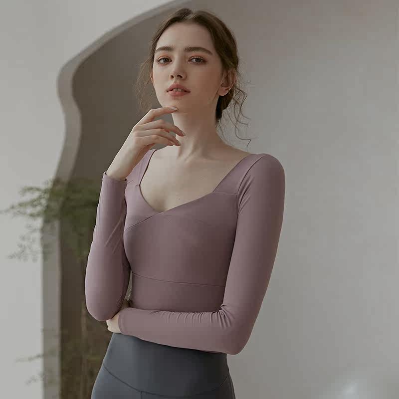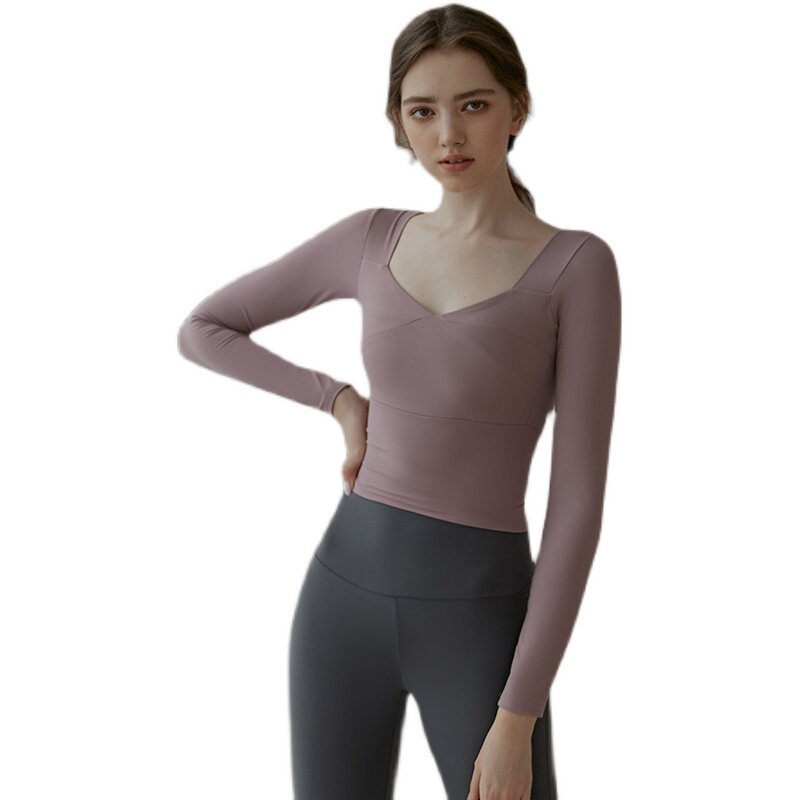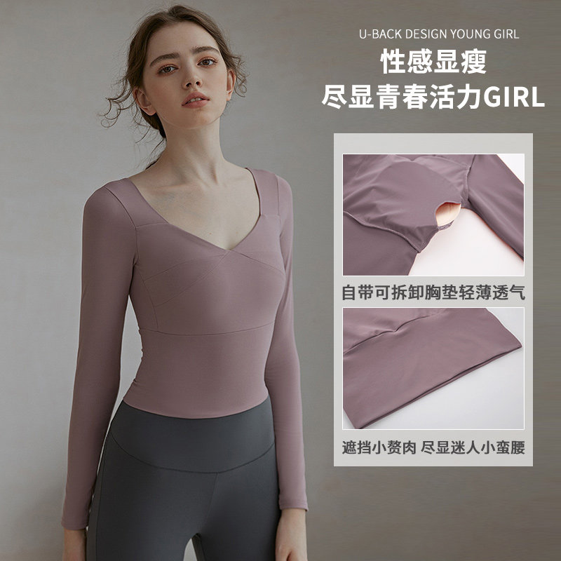 Yoga Suit Woman Summer Style Long Sleeve Tight Fit With Chest Cushion Two Sets Temperament Elegant Fitness Room Running Sportswear