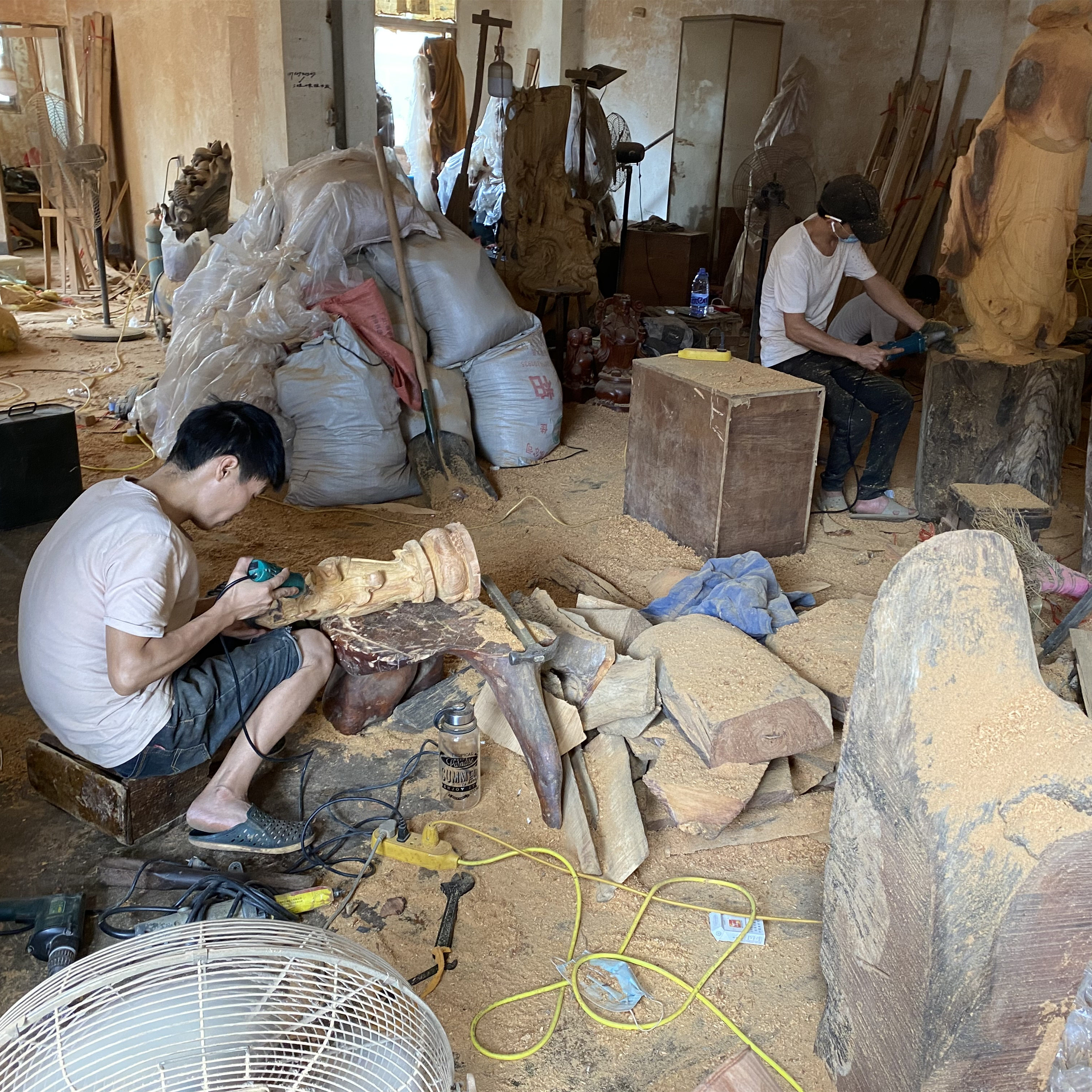 Cliff Bergen Sculpture Pendulum with red wood Artisanal Engraving Guan Guanyin of the Goddess of the People's Statue Giant Landscape Craft Gift Pendulum