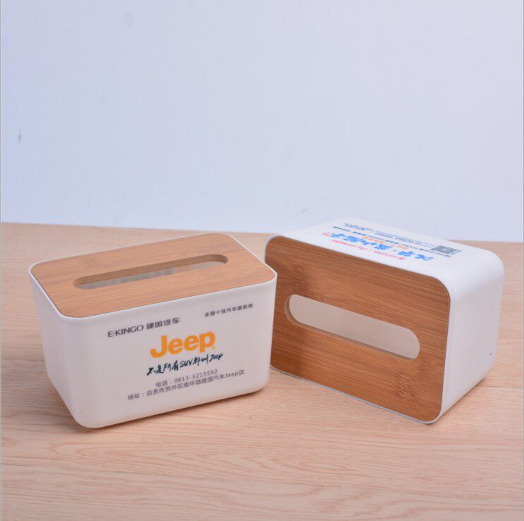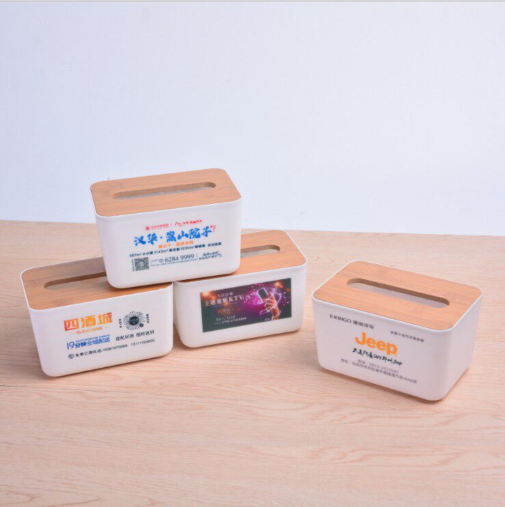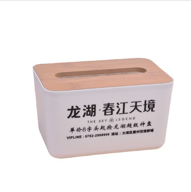 Customized plastic advertising toilet paper box customized hotel dining room tissue box company napkin box customized printing logoo