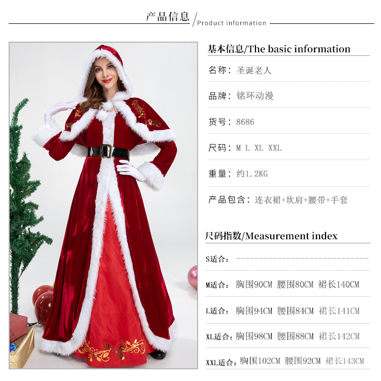 Christmas old costumes adults' Christmas old Gong suit men and women Christmas parties dress up and decorate the big size
