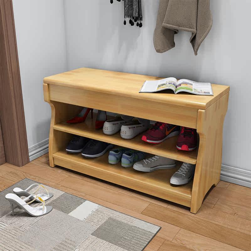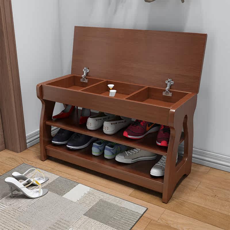 Changing shoes stool Home door All solid wood entrance door wearing shoes stool Sitting Shoes Cabinet New Chinese Versatile Nordic Storage